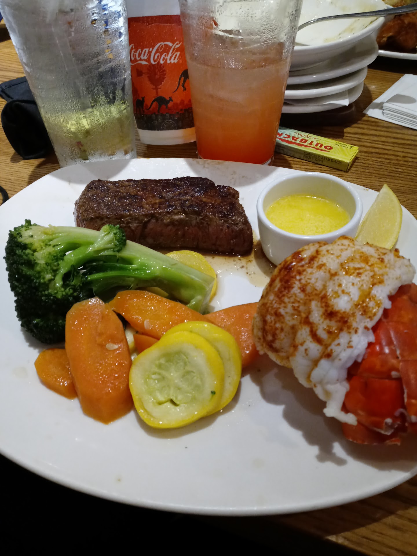 Read moreI would give it 4 stars based on customer but less for cleanliness and food execution and presentation. This is our first visit to this location. We had to send back the blooming onion as it was burned and the actual onion did not even look like what the standards of outback should be. It was delivered to our table by the food runner (or another server who set it on the table and flew away before we even had a chance to ask for plates. We waved to the manager who was close by and as soon as I pointed to the blooming onion he looked like even himself was not happy with it. He apologized and took the plate away and said he would Work on it.he delivered the next one himself. It was a bit better but not the usual outback blooming onion. I ordered the 6 oz sirloin with loaded potato and seasonal veggies and my fiancé ordered the 8 oz sirloin with grilled shrimp and friend fires and veggies. The carrots were over cooked, his shrimp was dry (considering an up charge of $5 for that I would say it was overpriced for sure) My steak was burnt on one side and I was too embarrassed to even say anything about it. This is not our first time at outback, we understand food prices went up Considerably on everything but this was for sure the most uncomfortable visit we ever had not only because of the food execution but cleanliness as well. The table next to us was never cleaned properly before it was set up with new rolled up silvers and the ledge next to my head at the booth had a layer of dust!!! U can also see food crumbs on the booth seat across from us with the rolled silverware on the table ready to be sat again!!!! Now a days with Covid and the wages being paid to the staff, it sure is not acceptable to have such low standards of cleanliness! I am disappointed and will not be coming back to this location. May be others but for sure...