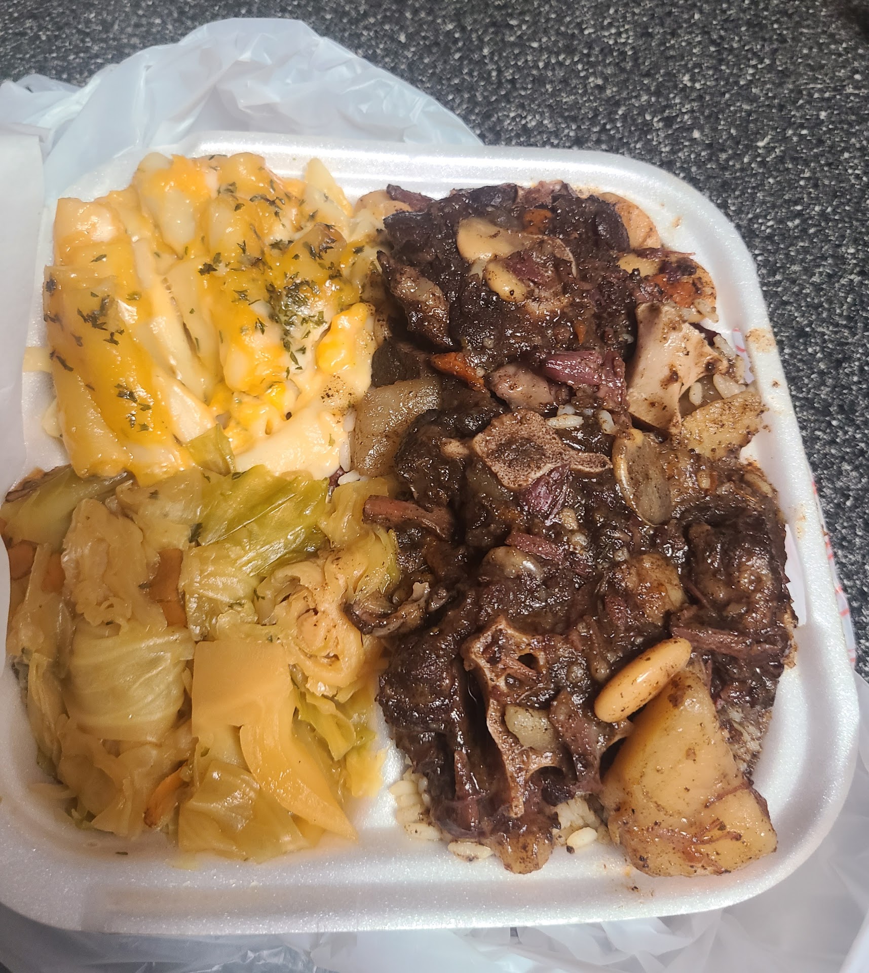 Read moreOrdered 2 plates -1st plate ribs, mac and baked beans. 2nd plate oxtails, cabbage, and mac n cheese. My experience was not satisfying no cornbread, ribs was still pinkish, cabbage had no flavor, mac n cheese taste very sour and appeared not fully cooked, baked beans more chucks of meats than beans. My total bill was $40 something dollars not worth it!. Don't believe the hype...you see online. Maybe I caught them on a bad day, but for me this is first and last time, I will never buy anything again from thr oxtail spot, first impression...