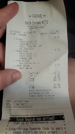 Read moreI am currently at Panda Express at St. John’s Town Center, Jacksonville, FL. (November 8, 2025 at approximately 1:35 p.m. I went through the drive thru and encountered a worker by the name of Yanni. Yanni was extremely rude and lack customer service. I gave her my credit card and told her to wait a moment because I will have to unlock it. She said ‘thank you’ and closed the window. Immediately a declined notification came on my phone. She reopen the window with a serious expression on her face, clearly annoyed and stated that the card is declined. I replied “I know, I told you to give me a moment because it is locked.“ She puts on a fake smile and said “okay”. She closed the window again. I unlocked the card and was just sitting there because the window is locked therefore I couldn’t notify her to try the card again. Finally, she unlocked the window and try the card again, it was approved. When the food is ready, she open the window and shove the food bag in my hand and said have a great day with an attitude. I will throw the food away. I respond “Keep it”. I don’t need fake and rude courtesy and I will never support this Panda Express again. It does not take 1 minute to unlock a card. Please train your worker better. Learn to radiate kindness and...