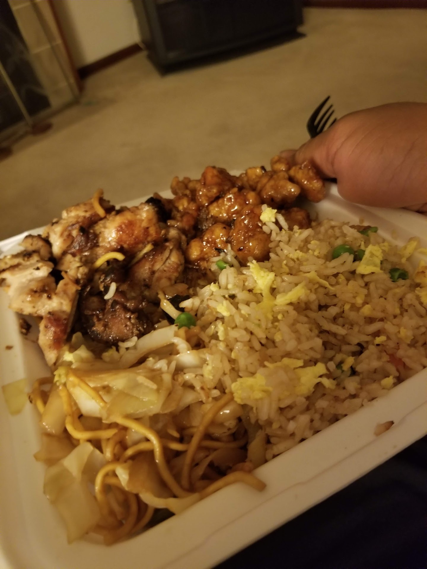 oh and i Only came home to find one pz of beef on my brócoli beef (like 5) & burnt egg on my dry flavorless rice!