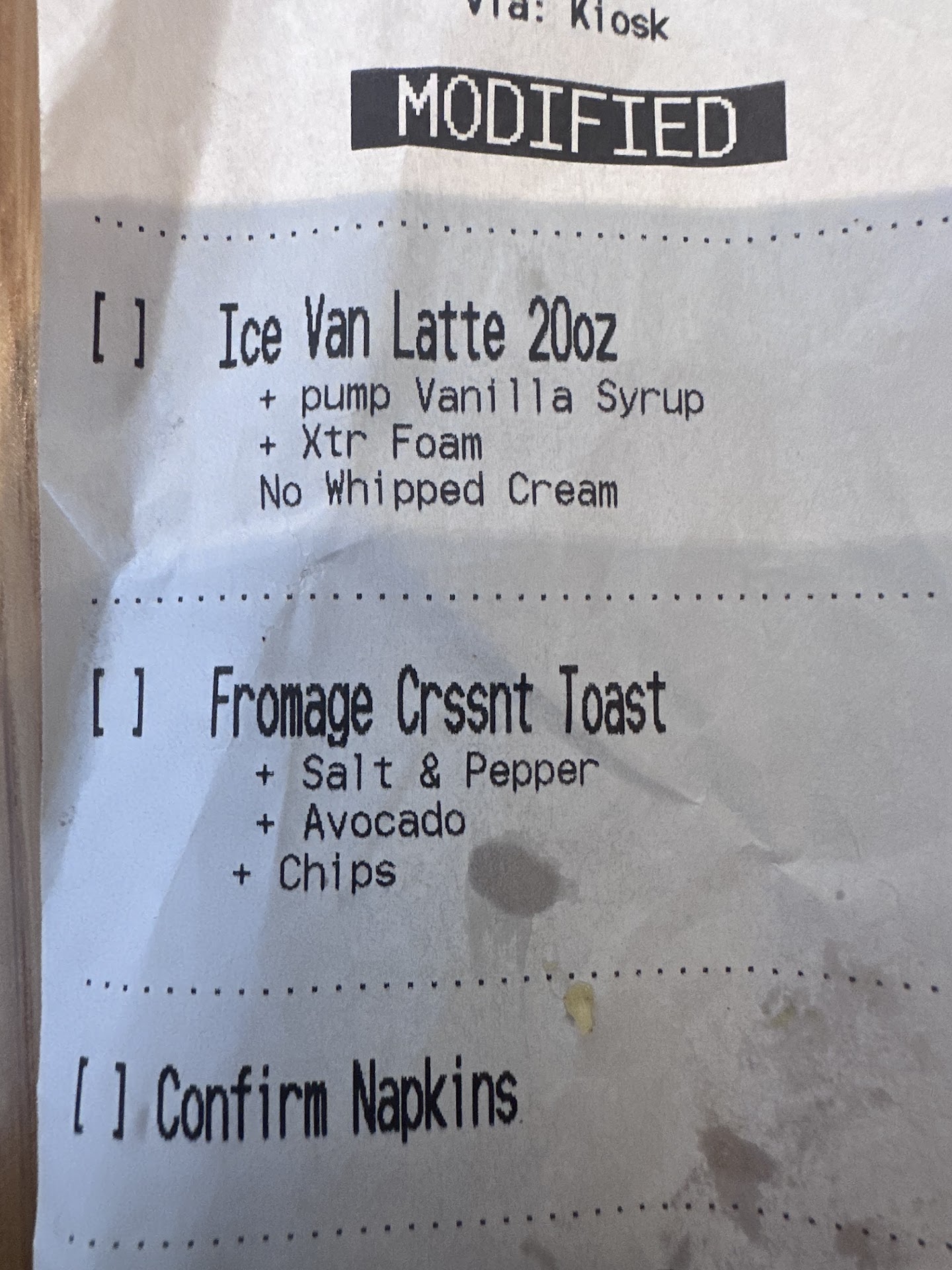 Read moreExtremely disappointed! I couldn't wait to try the croissant toast sandwich so that's what I ordered along with a Madagascar vanilla iced latte with foam, extra foam. As you can see in the pics, the "croissant toast" looks absolute nothing like the pics they have of them, it actually doesn't look like croissant at all, and it didn't taste like one. It's looks and tastes like regular thick toast. It was very sloppily put together and it hardly has anything on it. It was very dry and crumbly , so this was a huge let down! My coffee ... Madagascar vanilla latte with EXTRA foam. She sat it on the counter and it had no foam so I asked for the extra foam that I ordered and paid extra for. She didn't seem very happy but did it and brought it back with a very thin layer of foam. The latter truly tasted like watery milk , had no coffee flavor and no vanilla flavor, not to mention the pitiful attempt at "extra" foam. The whole visit was a disappointment . I honestly do not think the bread was "croissant toast" and it's obvious they do not care about customer satisfaction nor do they care about the food they put out as I said it was very sloppily put together with VERY LITTLE of the Ingredients that comes on the sandwich. It was just a sad pathetic looking toast sandwich next to an extremely watered down "latte" that tasted like nothing more than watery milk. Waste of time and money, they should be ashamed of the quality of the food and drink...