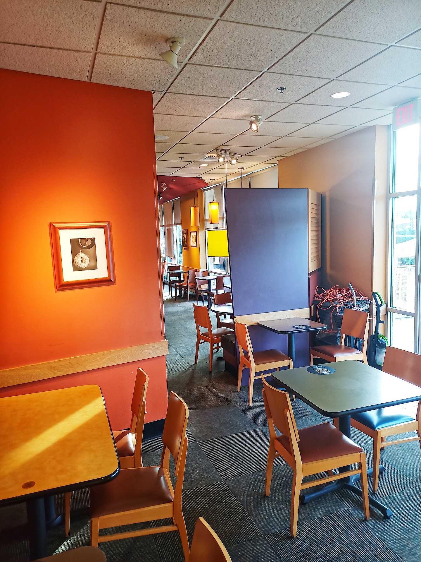 Today is National Eat Outside Day so my wife and I wanted to find a healthy eatery with an outside patio. I knew things were headed downhill when we walked inside to find 3 ladies at the counter talking. One walked away when we entered but the other 2 continued to carry on talking without greeting us. We were finally greeted by a polite young lady sweeping the dining room. Eventually my wife headed to the kiosk to order. I said, I was willing to wait until the cashier's were done talking but wife responded quietly, " It's best to order at the Kiosk because they always mess up our order at this location anyway!" So we ordered and when it asked for a buzzer/table tracker we went to grab one and the sweeping employee told us, " don't bother, those are all broken! Just make up a random number." So we put "1" and went outside to the patio. There was only one other table with 2 ladies finishing their dinner so we didn't think there would be any confusion. About 15 minutes later the same sweeping Panera employee came outside to the patio to tell us our order was ready at the counter!!!! So we go back inside to get our order. After sitting down, guess what? Yep, both my wife's and daughter's order was wrong. 2 out of 3 items were wrong!!! :(. My wife took the food and ticket back to the counter!