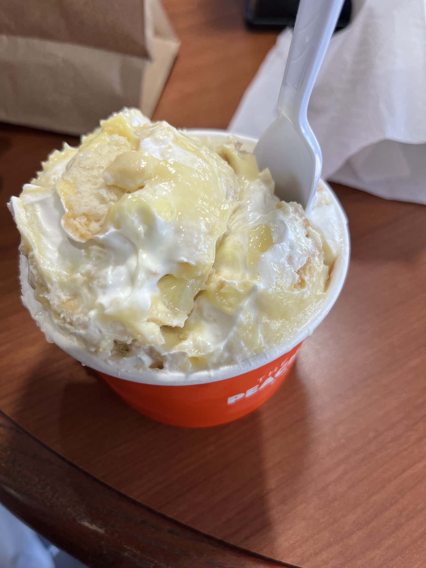 If I’m being completely honest, I argued with myself on giving this place 3 stars. The thing about it is, I WANT to like it, but I just don’t. We ordered a Red Velvet Pudding Shake which was more banana pudding than red velvet. The Peach Cobbler tasted like they baked it with the peaches still inside the can. The Blackberry Cobbler, which you had me in the first half, but ultimately I ran into a puddle of iron flavored peach syrup, with little to no crust. Which by the way the syrup shouldn't be 3/4 of the cup. Last, but not least we had the Salted Caramel Brownie. It was a bit crunchy on the outside like it may have been waiting on me inside that box for a day or 2, but that frothy whipped cream, delicious vanilla ice cream, and very low quality caramel saved it (how the icecream overshadowed the cobbler and brownie is beyond me). All in all, for a place that specializes in peach cobbler I was NOT impressed at all. I was going to add this to the snack rotation, but it wasn’t worth the $50 (4 Items and a $5 tip) the food just doesn’t scream out that it’s been made with love, and I can’t get jiggy with that. Plus the employees need some help, it took 15 minutes to place an order and another 30-35 to actually get the items (very nice employees though), and that’s just unacceptable for something so simple. I’d hope everyone who hasn’t, still gives them a try though. There seems to be a good amount of people...