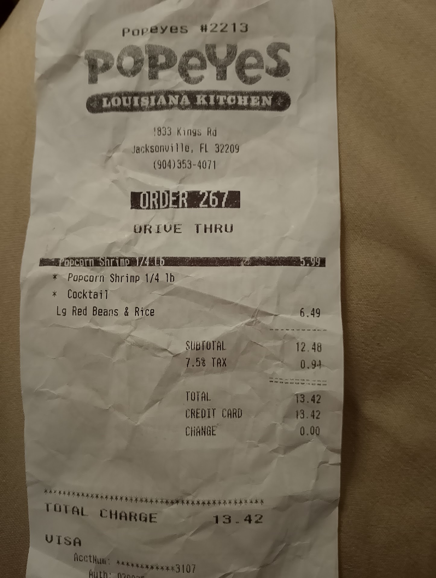 Read moreAfter being told by Ms. Val (not sure if that’s her name) spicy white would be cooked. Waited in line for almost 25 minutes only to get to the window to be told they did y have any spicy white to cook. She then told me that there was some mild white that had just come up. To my hesitation, I accepted the mild white. I only said yes to it because I believed her when she said it just came up. If spicy white was not going to be cooked, I would have gone elsewhere. When I got home. The chicken was not fresh out of the grease. It was warm at best. I don’t think it was the temperature that the health department would deem to be safe. This to by far the worst Popeyes on the North. I feel like I was robbed. When I called her to let her know that that was not fresh chicken she said, “I went through this in the drivethru.” The only reason I had a conversation with her at the window is because she lied. She had to have known before telling me she would drop spicy white, if there was none to cook. PLEASE AVOID THIS LOCATION!!! We need to stop spending money at places where our patronage is not appreciated by the employees. They are not doing us a favor. They are providing a paid service. And they should...