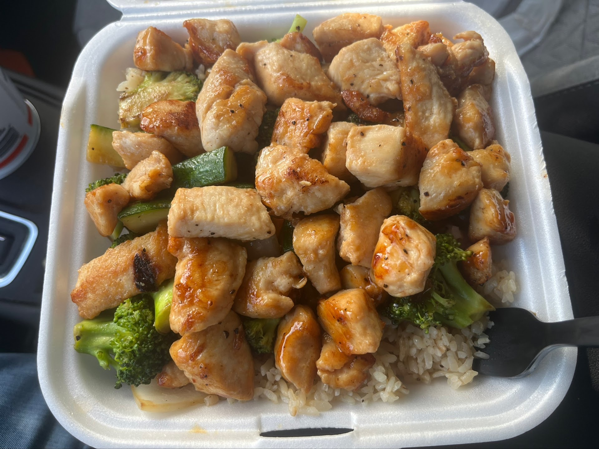 Ā Ā Ā Read moreI have seen this place for as long as it has been in oakleaf and have always thought nah Iāll just get hibachi at a normal sit down restaurant. Today I felt like hibachi but didnāt have time to sit down at a restaurant so I thought Iād give this place a shot. Dang! I was pleasantly surprised how good my meal was. Fried rice and veggies were perfect. The chicken was shockingly tastier and more tender than any of the other restaurants Iāve ever been to in the Oakleaf/Middleburg/Orange Park area. I really like how the whole bottom is rice and the top is the protein and veggies rather than both being on separate sides on the plate. The yum yum sauce comes in squeeze pouch which is perfect for evenly drizzling it all over. Also, I ordered the small portion and it was a lot of food. Service was quick and easy. Definitely will be back more often and canāt wait to have my wife try it too! š