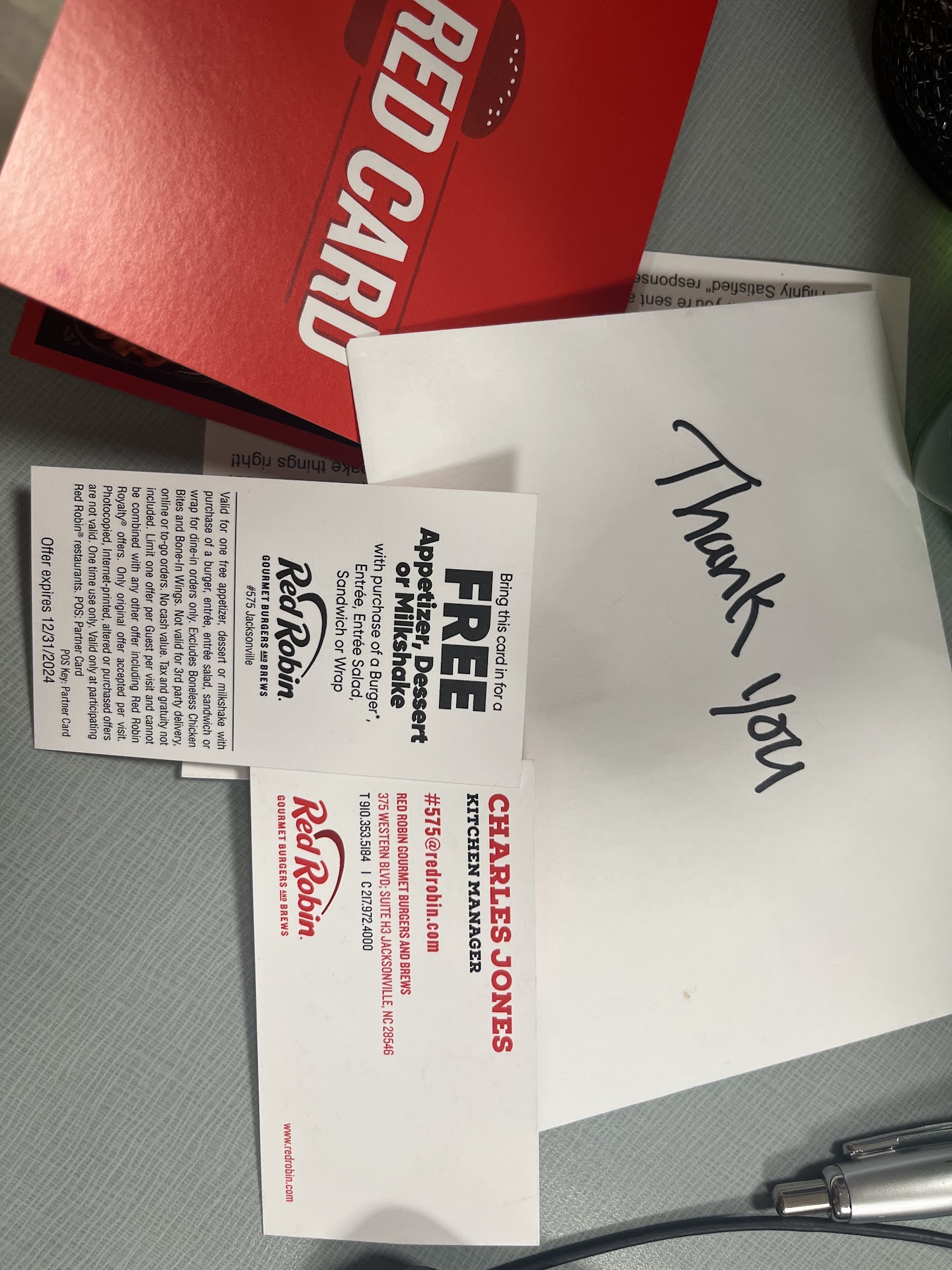 In an industry where service can make or break a visit, Joshua’s dedication and work ethic were shining examples of excellence. He didn’t just serve food—he created a dining experience that left a lasting impression. Red Robin is lucky to have someone like Joshua on their team, and I will definitely be returning, in part because of the outstanding service...
