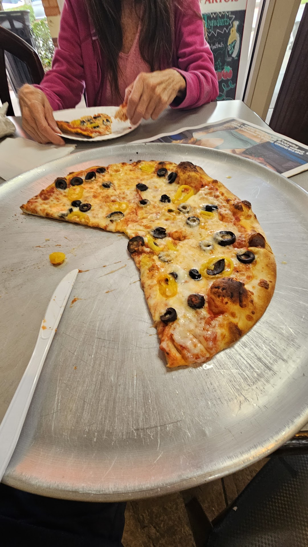 Read moreTried this place on a whim while shopping in the area. I usually go to another authentic Italian spot when I am across the bridge but time didn’t allow for it. This place is usually super busy every time I am in the area but I joyfully walked right up to the counter to place my order. Staff is friendly. They said it would be about 30 mins for my pizza to be ready. I decided to just sit in and wait since I was waiting on someone to shop nearby. I liked that you can watch the pizza’s being hand tossed by the gent in the window behind the counter. As I waited on my pie the place became full of patrons quickly. Many seemed to be regulars in the area. Needless to say that meant I had to wait a little longer than 30 mins which was fine. I could sit and watch the chaotic holiday shoppers passing by the windows. Now down to the nitty gritty……. the taste of my hand tossed pie. It had a great flavor of the white cheeses with a touch of ricotta and a bit of bacon. The only downside for me, and the reason it didn’t achieve the 5 star rating, was the crust edges. It was too tough and chewy for me to eat at all. However, in their defense, I have Invisalign and some foods are just harder to eat right now. Will I go back to this spot? Quite possibly when I get my Invis off I will try again. They sure haven’t endured the test of time being in this business for years if they weren’t a favorite amongst...