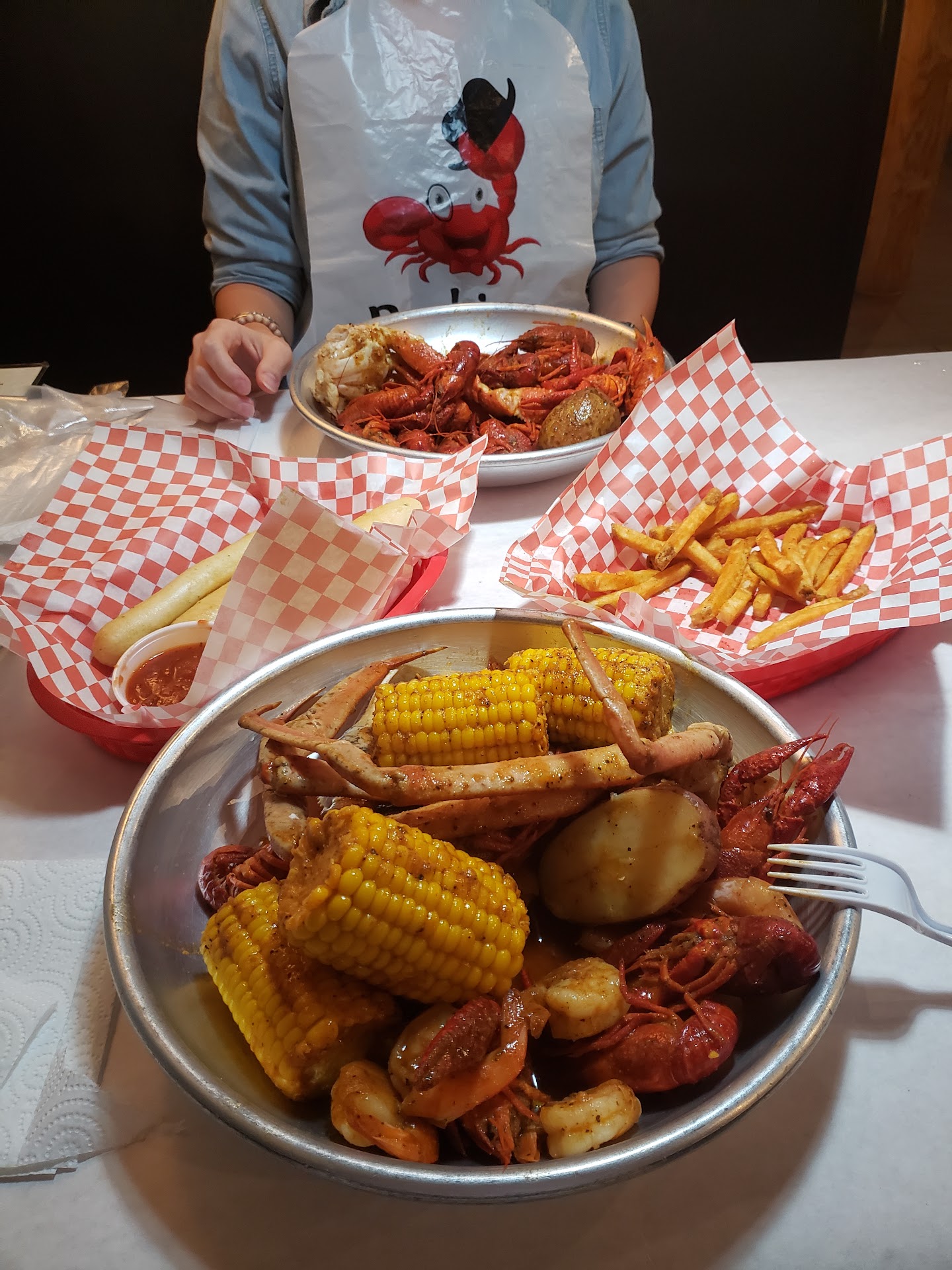Read moreWe walked in and the person who greeted us was clearly headed home , they were on the phone and carrying their bags but they did seat us (that was kind of them) the atmosphere is dated and didn't really fit the vibe of what I was expecting. The place was empty but but for whatever reason everyone was sat in one section even though there were two servers on, it would have been more comfortable to be spaced out for privacy given the fact that there were only about five tables in the restaurant. We ordered waters while we looked at the drink menu, I ordered a bud light and my husband ordered a youngling draft . The youngling was out so he ordered a Sapporo , it took out server 15 minutes to bring the Sapporo over . She brought it out with our meal so I assume she just didn't want to make a extra trip to the table. Neither my husband or I have ever been to this kind of restaurant so we didn't really know how much food to order or what exactly we wanted, the server wasn't helpful . We asked if the combo boil was enough for two people because we didn't want to have left overs and she said it was not meant to be shared. We went with our own intuition and shared , it was more than enough. The food was flavorful but we had to ask for share plates witch was weird because she knew we were sharing. She set the plates down and walked away without asking if we had everything we wanted .. I had to flag her down to get the cracking tool to open our crab and then she didn't come back until our meal was basically finished and we were ready for our check. Overall I was disappointed in the whole experience. I wish we had left and gone to the other crab place on blanding ( witch is what we had discussed doing the moment we walked in the door) but we saw the reviews and everyone else seemed to have a great experience here. The food was okay but not worth putting up with the bare minimum service and what looks like dollar tree tiki...