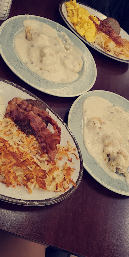 Edit: it's been years since that first review and it needs to be changed. It's not great, it's changed a lot in the last year. Breakfast Menu has downsized so much, half of what was available isn't anymore. And the meal I used to get was 7.98 now it's 11 and some change (I didn't order it because of the price.) I got the BLT. $5.99 bacon was over cooked I had a wedge of tomato and the center pieces of the lettuce leaves. Not to mention there was a drop of mayo on only one side of the bread. The coleslaw was sour( meaning it had gone bad, not just vinger) the hash browns were still good and buttery. The hot dog with french fries my daughter got was good. However the hotdog bun was a poppyseed bun. Which should be stated for at least the childs menu. Hers was only about $5.00 so hers was the only thing worth it. She also got a pancake, just one and it was just shy of $4.00. my husband was so disappointed in his biscuits and gravy, the mansizer or whatever it's called, didn't have enough for the price. Just 2 eggs and biscuits and gravy for just over $11.00. He said his gravy was overly floury. Not worth the price of the food anymore. Way to expensive for simple meals. Coffee is still the best in town though. Old review -I love coming here for breakfast great people and great service and the food is...