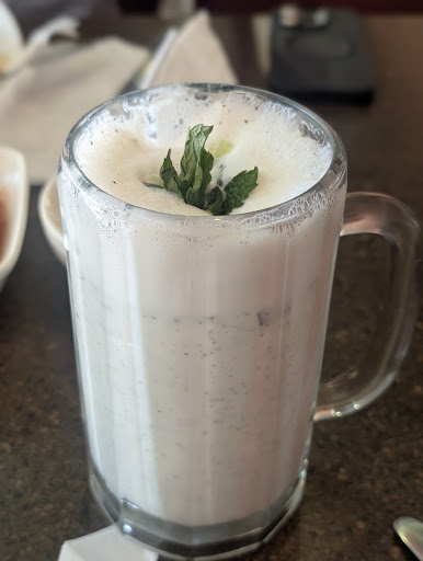 The restaurant atmosphere felt a little worn down with inconsistent decor, and a bit dusty and sticky in corners. The flowers on the table were great and the solid glass and neat silverware in nice quality napkins was as it should be. The food looked way better in person than the menu pictures. And the yogurt drink (doog) looked and tasted fantastic. (The menu pictures looked like we were about to get greasy fast food, and I was nervous, but pleasantly surprised. Highly recommend getting some professional pictures and professional help to make your menu look less fast foody.) Some things that were left around looked a little sloppy. Eg. Paper goods piled in the corner, paper towel just tossed on the side of the sink instead of in the paper towel dispenser, duck tape holding wires in place, a grimy hand sanitizer bottle on the bathroom sink. I think a regular thorough cleaning, and some furniture, screens or basic decor to hide things like the paper goods and soft drink dispenser and some other odds and ends you have laying around would really help. Some simple prints to hide a few bathroom cracks and make sure that everything is properly cleaned to the corners and menus and high chairs and sanitizer bottles are regularly wiped down.
