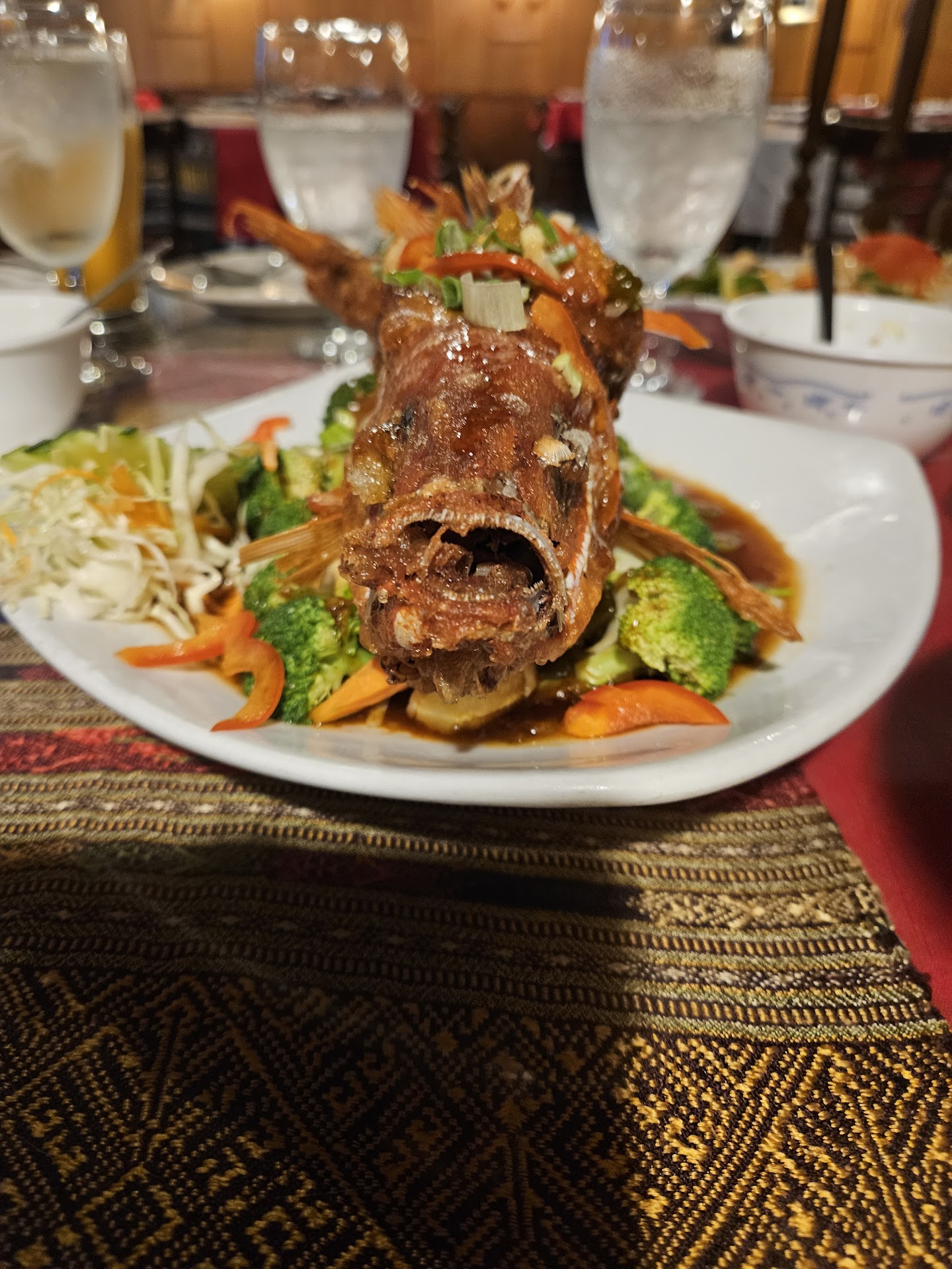 The rest of the party ordered a variety of dinner items from drunken noodles to curry dishes to fried rice. Most dishes are listed with just vegetable components and in many cases you will pick a protein if desired. Other dishes include duck and snapper. Lots of menu choices available for dinner so you should be able to find something.