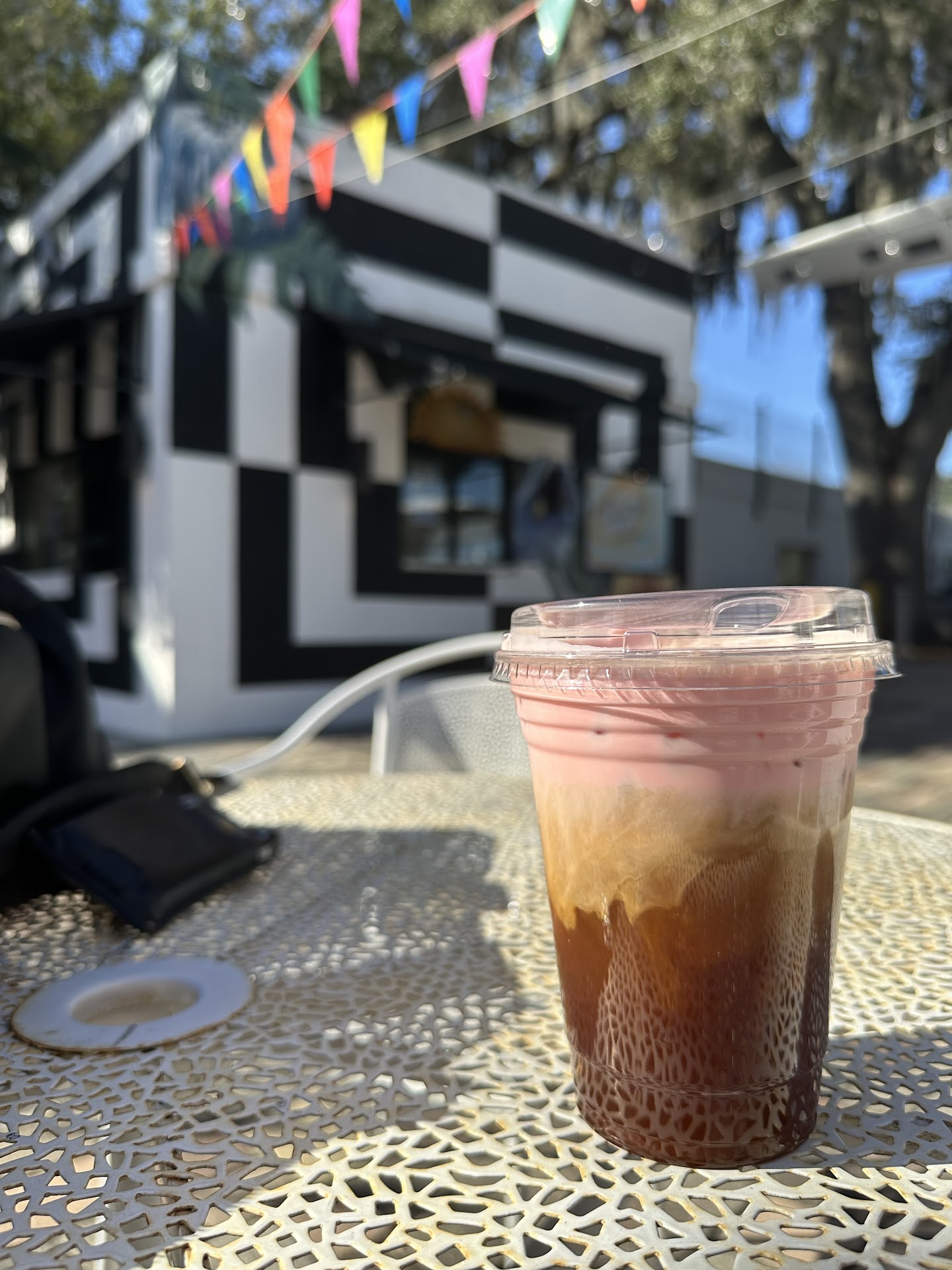 I normally get an iced or hot honey, cinnamon latte with oat milk.