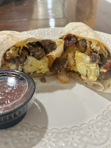 Read moreMy sister ate at this place on Thursday, she enjoyed it so much she brought me on Friday to give it a try. The outside has a nice big porch with tables and chairs to sit at. Walking in the vibe was very welcoming. The smells, decoration, the older gentlemen sitting around talking. It felt like I walked into someone’s home on an early Saturday morning. Eventually we learned that location use to be her grandfather’s house. The young lady who took our order was very sweet and polite. Come to find out she is the owner. My sister and I both ordered the loaded breakfast burritos. The owners mom brought our food to our table. She was also really sweet. The burrito was delicious. It had crispy potatoes, 2 types of sausage, bacon and eggs. It also came with a small container of the freshest salsa. It was very filling and full of flavor. I could only eat half. Later in the evening I warmed the other half up and devoured it.