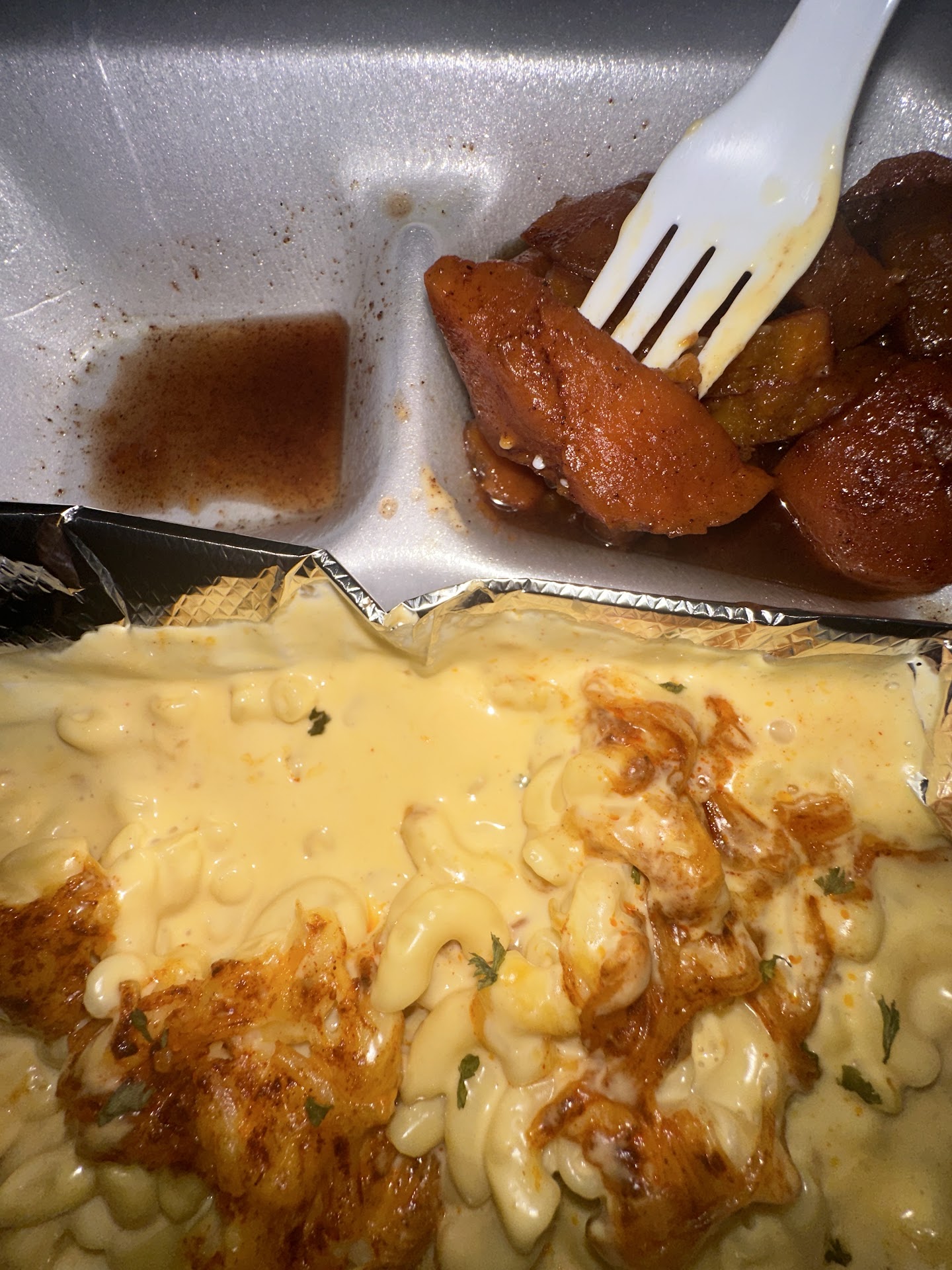 Read morei finally stop by to see why this food truck always got long lines and so busy i must admit i was amazed! i never had mac and cheese and yams taste this good since my grandmother! the thing that got me is a lady was standing in line placing a order and some guy was smoking a cigarette near her and i can tell she was uncomfortable and the business owner gave the dude back his money lol and cancel his order! that speaks volumes! if you dont respect his business or his customers he will turn you down! he not chasing the money i can tell he got a real passion for this .. i love it!...