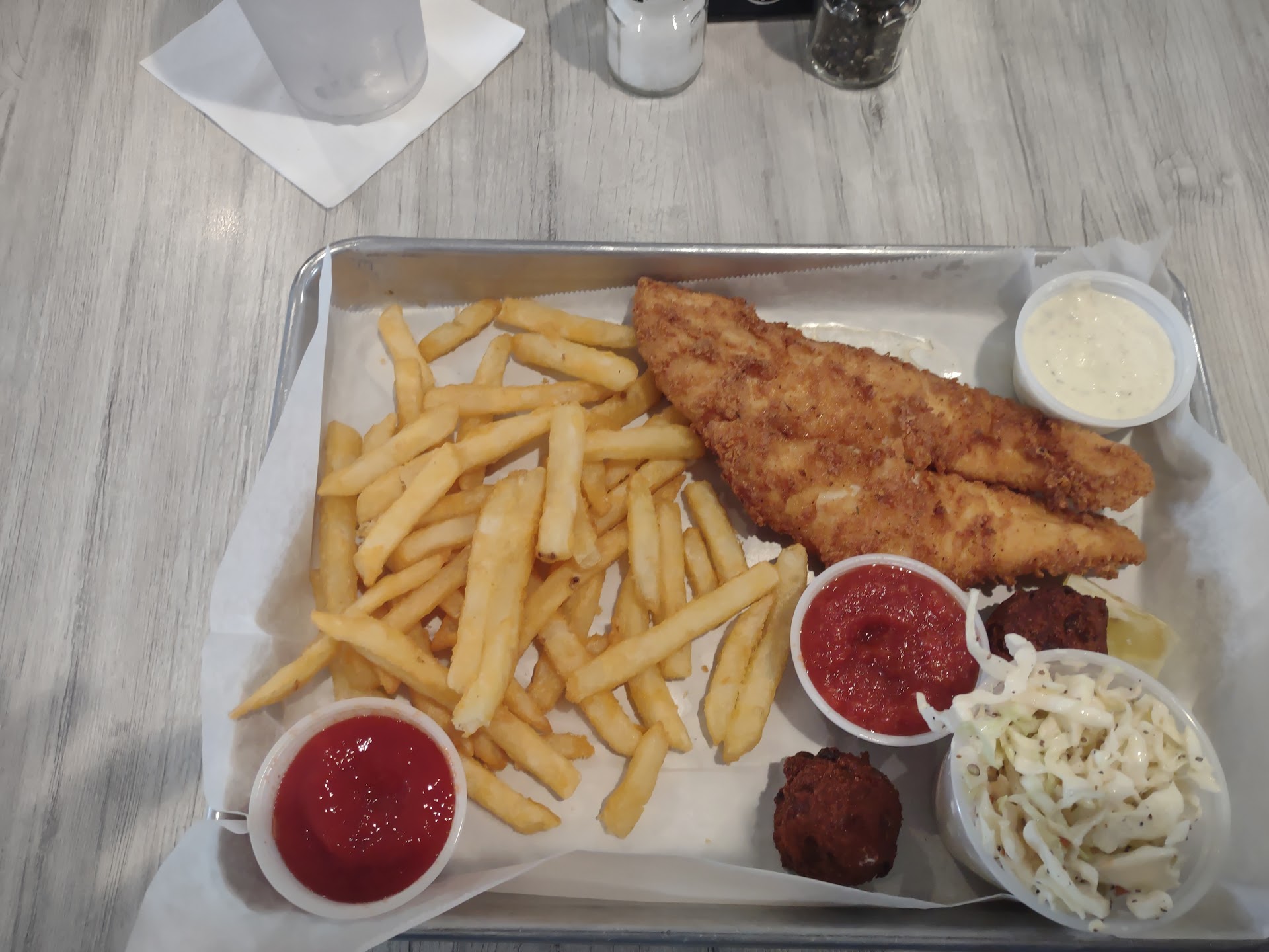Unfortunately on our recent visit was a disappointment. 😕 I don’t like to leave negative reviews, this needs to be said so they know what our experience entailed this most recent Wednesday evening Having dined there on multiple occasions, my lady, her daughter and myself made our trek to the restaurant in anticipation of another great dinner at one of our favorite places. Our treat to ourselves. Because we know they always deliver a great experience. Of course I know there’s no such thing as a perfect evening in the restaurant business. There’s always a little few hiccups here and there. Our server was great, we ordered the fried pickles and calamari for appetizers, followed by the shrimp pasta, the catch of the day, which was triggerfish, and I ordered the fish tacos with the trigger fish. Fried pickles were spot on, but the calamari was not as we’ve experienced before. Fried strips of calamari that were very tough, and way over done in the fryer. But we powered through it, in anticipation for entrées. (we were so hungry, we just dealt with it) The shrimp pasta, and the other two plates arrive shortly after, the Cajun shrimp pasta was spot on. It was the catch with the trigger fish and the trigger fish tacos, failed. The catch came with coleslaw and mashed sweet potatoes. Which we asked for. The Catch with trigger fish was way over salted/season, a little over done killing the yummy taste of triggerfish. The mashed sweet potatoes was just meh. Nothing remarkable. Coleslaw was good and fresh. My trigger fish tacos were a lot to be desired. The fish in the tacos was overwhelmed by the spicy 🌶️ chili pepper and salsas, I couldn’t even taste the fish. Being from Texas, I love spice. But this was out of control. I pulled the fish out of the taco so I can enjoy it, I found the trigger fish, tough, way over done chewy. The waitress did check on us, I am not one to send food back when restaurants have a hard time staffing these days. We politely, payed our check, tipped and exited the restaurant. We all looked at each other and asked ourselves. What the hell was that all about. Restaurants are a tough business, and it doesn’t always goes as planned. Again, this is the negative review, and I hate it. But if this was my place, I guess I wouldn’t want to know where we failed and where we succeeded. We were verry disappointed, but hopefully will make a way back soon. I’ve met the owners on one or two occasions, and they are great people. The staff is always amazing, the place is always clean with good vibes. And the food is always generally great, except on our...