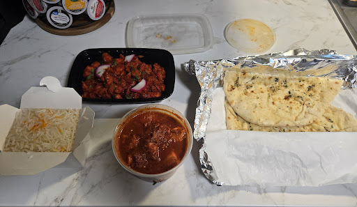 The food was absolutely delicious and freshly made to order! I got the Lamb Vindaloo Indian spice lvl I will say my spice tolerance is on the higher end so I did want it to be a bit more spicy than it actually was but it was enough. That to say I'm not complaining at all on the taste the flavors were phenomenal. The lamb was very tender and the potatoes were not too big. Which I appreciate! ( some places skimp on the meat and give too many potatoes this was not the case ) my husband got the Chicken Biriyani. He said it was very delicious and I was happily impressed at the large portion they gave him it was enough for leftovers. Of course, the garlic nan was also delicious and warm also nice and crispy on the bottom too! I finished the meal off with the Masala Chai it was creamy and light. Service was fantastic Raj was so friendly! My only Critique is I would agree with other reviewers that the music was mildly too loud. But I'm totally going back again it'll take the cake for being my new favorite spot in Jacksonville! It's about time we got some more healthy and ethnically diverse food options! :) JACKSONVILLE DON'T LET THIS PLACE...