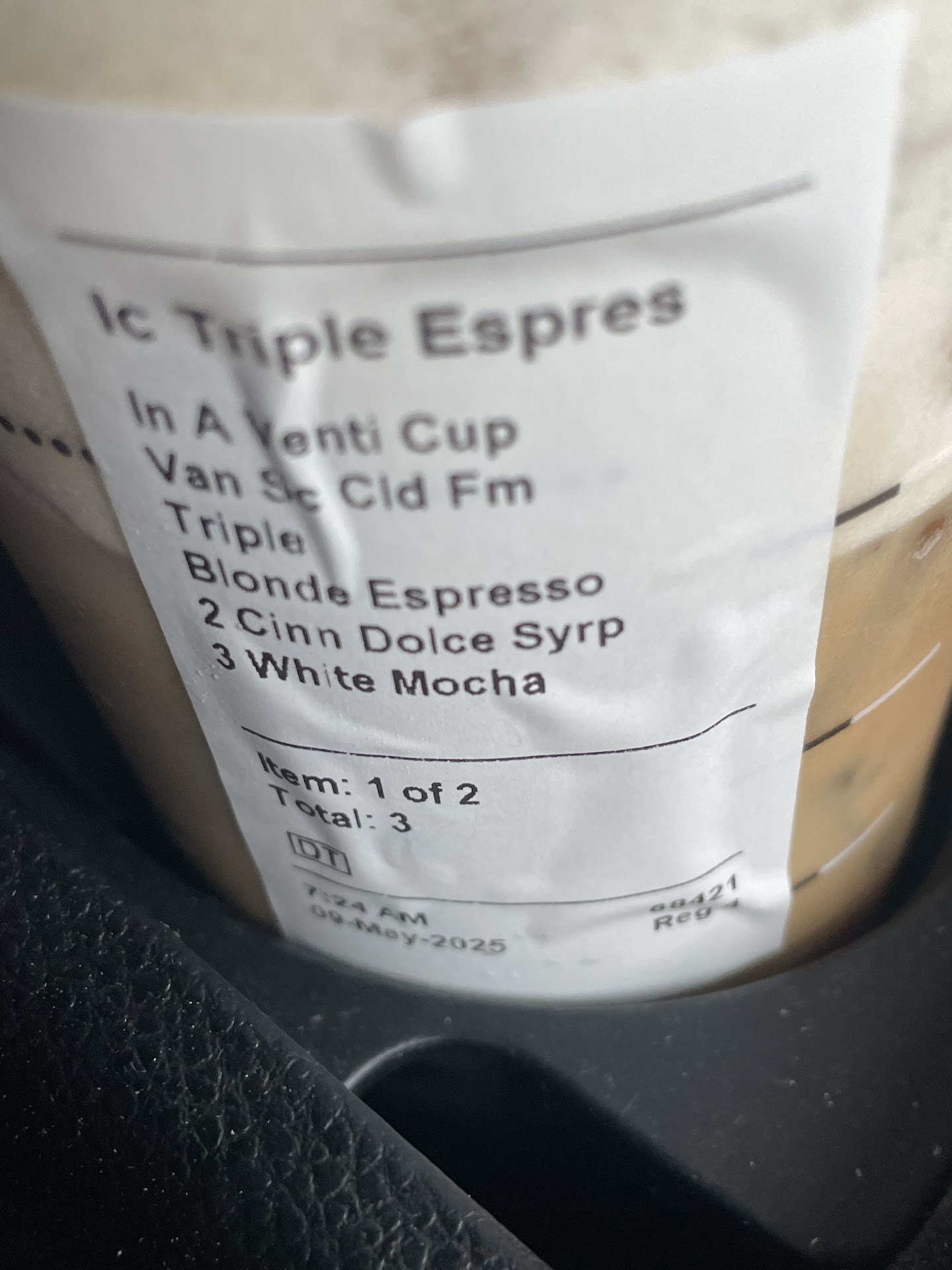Read moreI have received kind customer service here before, Even when the drinks are made incorrectly. However, this last time Aiden was very rude about remaking my drink.. It definitely rubbed me the wrong way saying that there is a pattern of me having my drink remade.. When there are baristas that will absolutely make it right and there are others that burn the shots every time… Maybe there is a pattern due to the lack of training and properly pulling shots… it is a Starbucks promise to remake the drink until they get it right. However, they give me a hard time and make me feel bad for it. That is not OK… It is absolutely not OK to call out my character because I am being honest and like my coffe made correctly when I am paying...