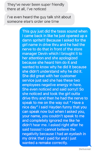 Read moreTonight's visit began in a way that made me question if i'd return to this store. I placed my order and the barista was less than friendly. Another pair of ladies ordered after me. As I waited, I overheard the male barista being asked if he had made what turned out to be my order or if he would make it. He had not made my beverage and decided he would not make it. He was standing by the window drinking a cup of water. No other customers were in the store or at the drive thru during this time. The barista that took my order made the order of the females that purchased after me. As they received their order and i'm still standing there waiting, Maggie decided she'd make my beverage. She made it better than any previous barista's and it changed my entire opinion of the store. Customer service is the heart of your business. When employees poorly represent the business everyone loses. Maggie is the reason I would ever shop at this location again. She deserves a pay raise, praise and to be the shining example of an...