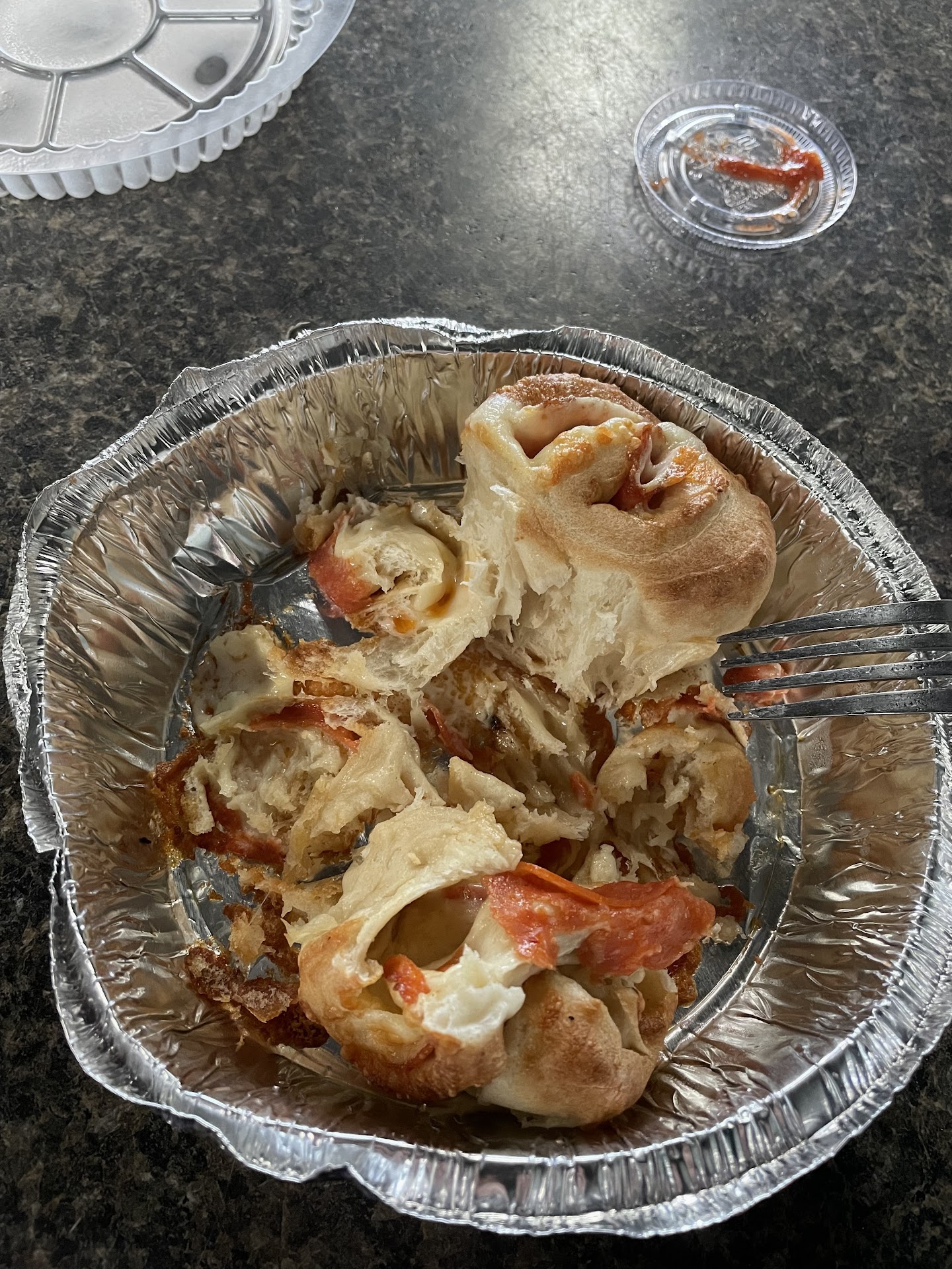 Read moreIt’s tasty but they’re so weird about giving marinara sauce and don’t have the best service. You’ll get a full thing of breadsticks (like 8 breadsticks) and a teenie amount of marina. OR they won’t give you any even if you specifically ask for it. We went in today and asked for extra marina and they said “for sure” and then didn’t give any (like even just the normal amount. No marinara at all). Another time, they were incredibly rude when we asked for it after they hadn’t given us any. It’s like a tablespoon of marinara and I’m pretty sure it’s meant to come with the breadsticks I don’t know why they’re so weird about it. And the marinara is tasty! The breadsticks are just kinda mid without the marina! I want my marina. That’s all. I’ll even pay a bit extra for marina. But I’m not getting any sauce. So the breadsticks are just kind of a waste because they’re just lesser, dryer versions of pizza crust. Marina maketh the breadstick.
