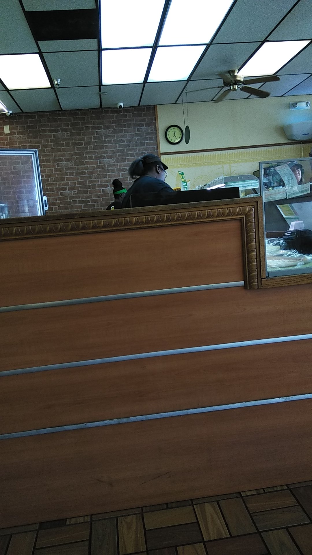 Poor customer service. Young black lady there is very rude. She had an attitude that made me and my family feel uncomfortable. She acted like she didn't want to be doing her job. She was sitting down at one of the tables with someone when we walked in but had to get up to serve me and my family of 3. As she was serving us, She kept rushing me and my family, she barely gave us a minute to figure out what we wanted to order. we were the only ones in line up until the last sandwich. But she would tell us to speak up very rudely with no nice manners. When i didn't speak up louder the first time she turned to the young black guy(he was wearing glasses) next to her that she was working on shift with and rollered her eyes at him. Like she was annoyed. I swear we weren't bad customers. she could of been more polite asking for our orders when trying to get us in and out. This was my first time at this subway, and Id rather keep going...