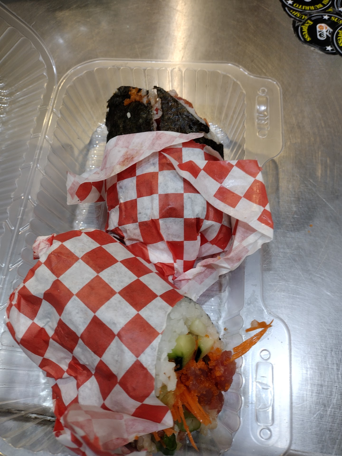 Great spot for sushi burritos! I get a veggie roll every time, and sometimes I choose to have it rolled, cut, or even deep-fried.