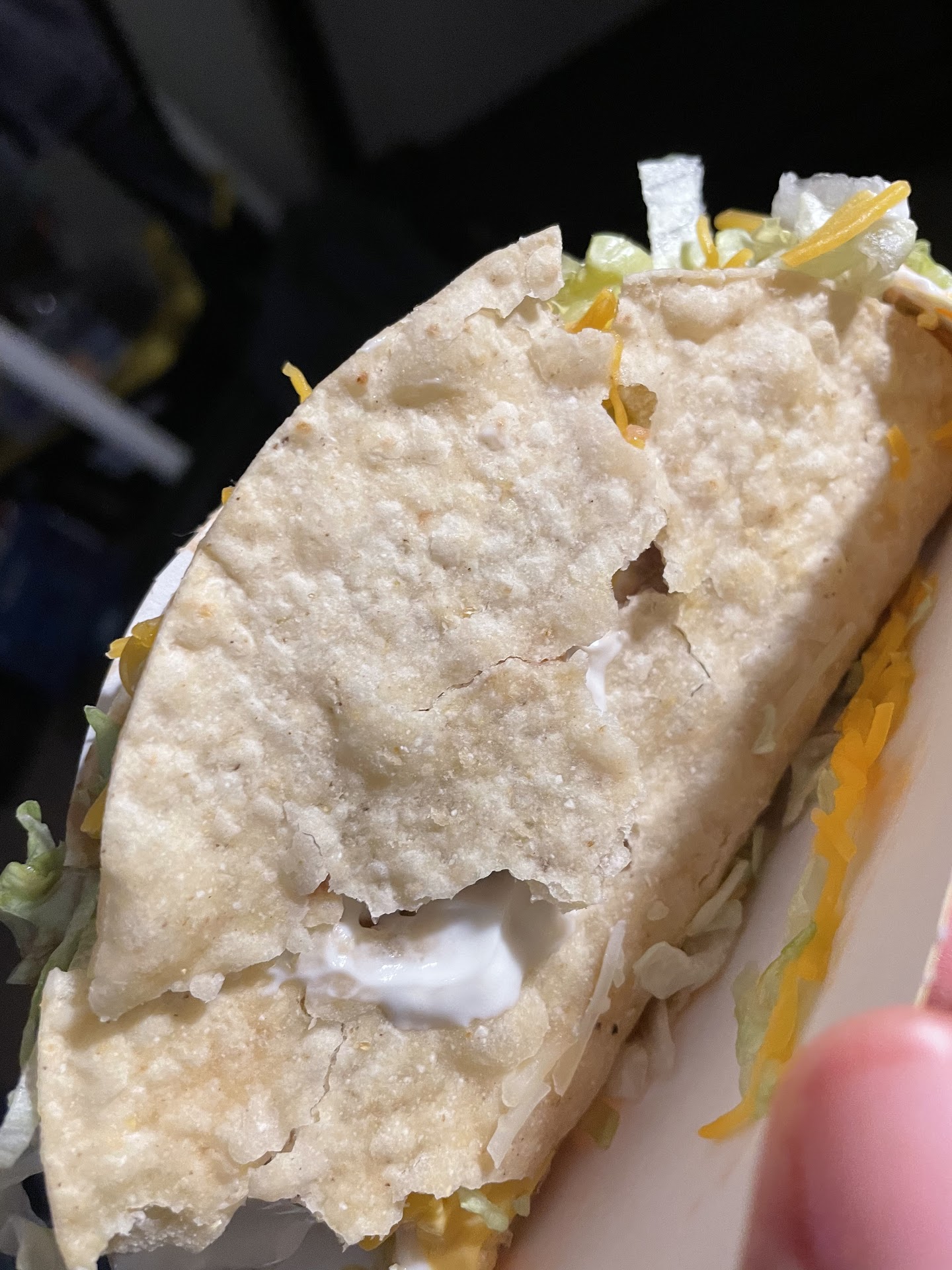 Read moreSo I ordered the $5 box and my taco looked like this so I called the restaurant and the manager named Tatiana was very rude and nasty on the phone. So I went back up there I asked to speak to the manager when I pulled up. Tatiana never came to the window. The other coworkers where at the window and told me I that my shell just looked old like it was setting for 15 minutes or more. I asked to speak to the manager again because she was in the back yelling and tell the coworkers I wasn’t getting a refund. Then I called my daughter to see where the receipt was, the coworker told me my daughter had to bring the receipt in because she bought the food. I ask for the manager again and she never came to the window. This was the worst service I have ever had.I don’t know if it’s the fact that they kept my nasty taco or that the manager never came to the window and was in the back...