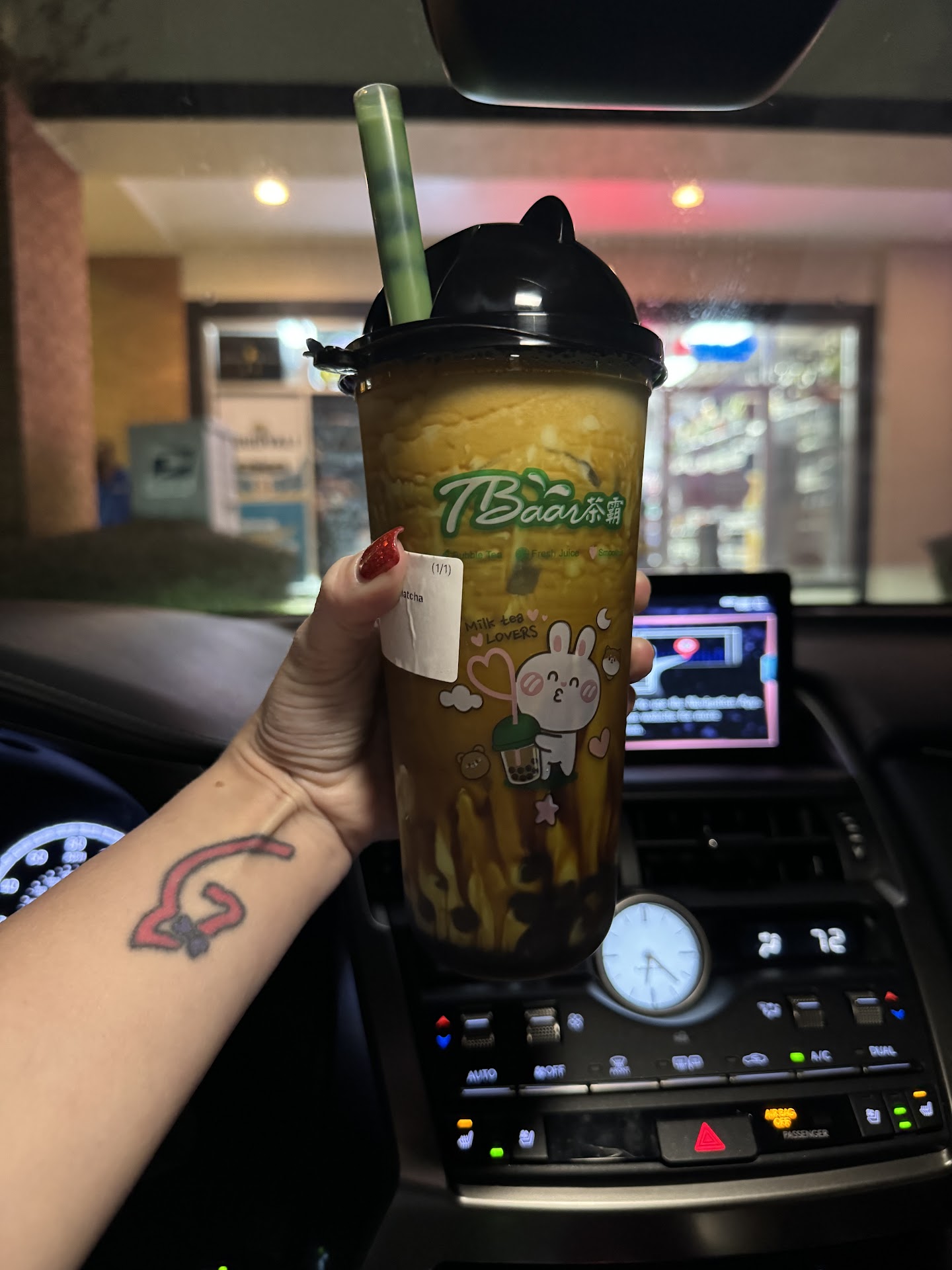 I have only got the Brown Sugar Bubble Matcha Tea (2 times now) and HIGHLY recommend. Itâs made with a Matcha milk tea (like a slightly less milky latte) served standard with brown sugar tapioca based boba pearls, and the cup lines with brown sugar syrup. A AMAZING combination. This time I got the âmilk foamâ which (I would have got the first time but didnât know) that is their version of âcheez foamâ. So delicious! Large (approx 24oz) + 1.00, milk/cheez foam + $1.00 ($8.08 after tax for a large with foam My favorite boba tea place is Tide Sugar Boba over on Southside Blvd, however, I donât live over there and have been searching for a comparable place nearby in th Westside. This is it! Tbaar & Tide Sugar have the same ordering system (digital ordering kiosk) & accepts Apple Pay. The drink recipe options are so similar that the only difference is the theme of the stores Tbaar indoors is smaller and bland ambiance, where Tide Sugar has a galaxy theme inside and is a larger place; Iâd be shocked if they werenât owned by same individual. The brown sugar syrup that is used to line the cup is amazing but sweet (as expected). You can customize the sweetness of the tea, 100%, 75%, 50%, 25%. If you get one with the brown sugar syrup, I recommend going with 50% sugar (in photo). I got 50% the first time & 25% this last time and in reality it was just fine at 25% for me. If you donât like super sugary, I recommend starting at 50% then go up or down from there. I had been getting Matcha Frappuccino from Starbucks to satisfy my matcha cravings but now that I have found this place, Sayonara Starbucks!...