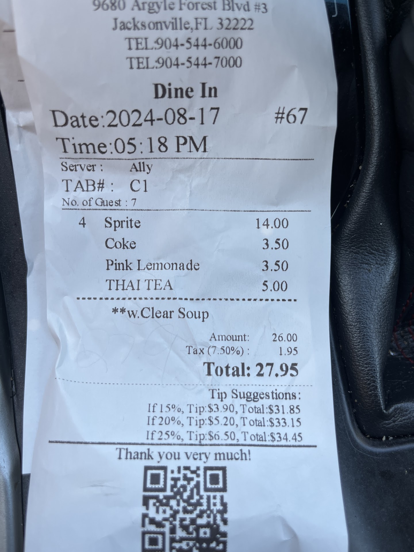We went to celebrate my brother being departed tomorrow morning. The waitress’s demeanor was totally off as if she didn’t want to attend to us. I’m unsure what the issues was I did have a few kids in my party but I can’t help I have multiple children. We ordered our food reluctantly got our questions answered, my daughter leaned in closer so she could hear her speak and the waitress jerked back and gave a nasty look. After this all the orders were made. Another waitress came over to ask my kids age because she was unsure if we were allowed to order kids meals. My daughter is 12! Okay we get through all this the original waitress brings over the soup began to pass it out like she doesn’t want to touch us and DROPS the piping hot soup on my mom. The waitress then leaves the table I look over and she’s cleaning herself off! At this point I ask can we please have napkins everyone is looking at us like we have ten eyeballs and all we wanted was napkins to clean up soup the waitress spilled. After all this I told them to cancel our order we would be leaving. Before we got up good they brought me a ticket for the drinks we didn’t get to consume. I paid for the drinks and began to leave another waitress came over to ask what the issue was. I explained the whole issue again and I was told “oh she’s new” really!?!? Hot soup being spilled and the solution is “she’s new”. I go out and I pay for my meal and service and I expect better. Needless to say I will no longer be dining or giving my hard earned money...