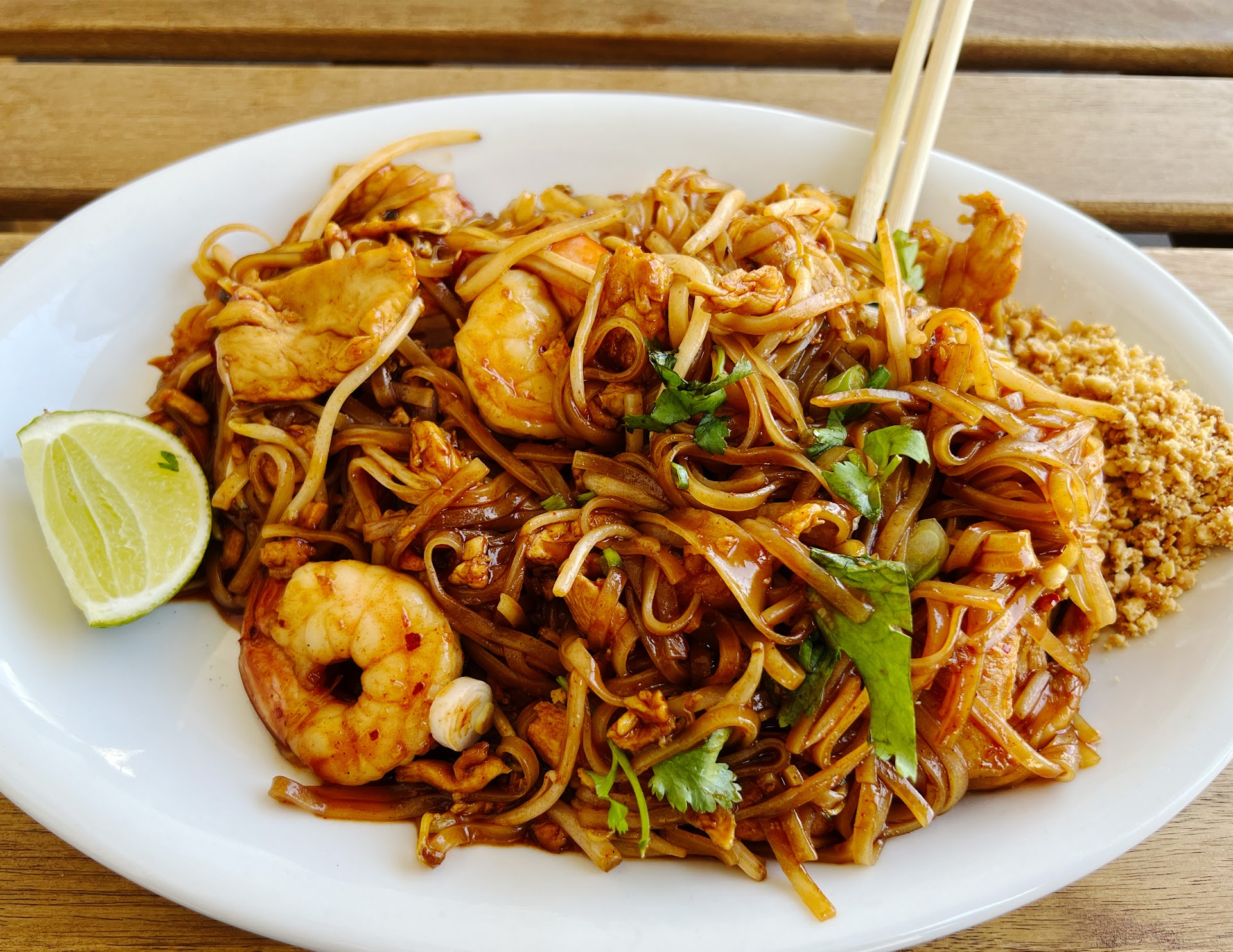 I ordered the drunken noodles with duck and the Thai noodle soup with duck. Both came out plated beautifully — nothing too fussy, just clean bowls and plates with food that looked as good as it smelled. The soup was fantastic. Brothy, slightly sweet, layered with flavor but still light. It’s not spicy by default, which I liked, because you can customize it. They offer three spice levels: mild, hot, or Thai hot. I went somewhere in the middle and it was perfect — just enough kick without overwhelming the dish.