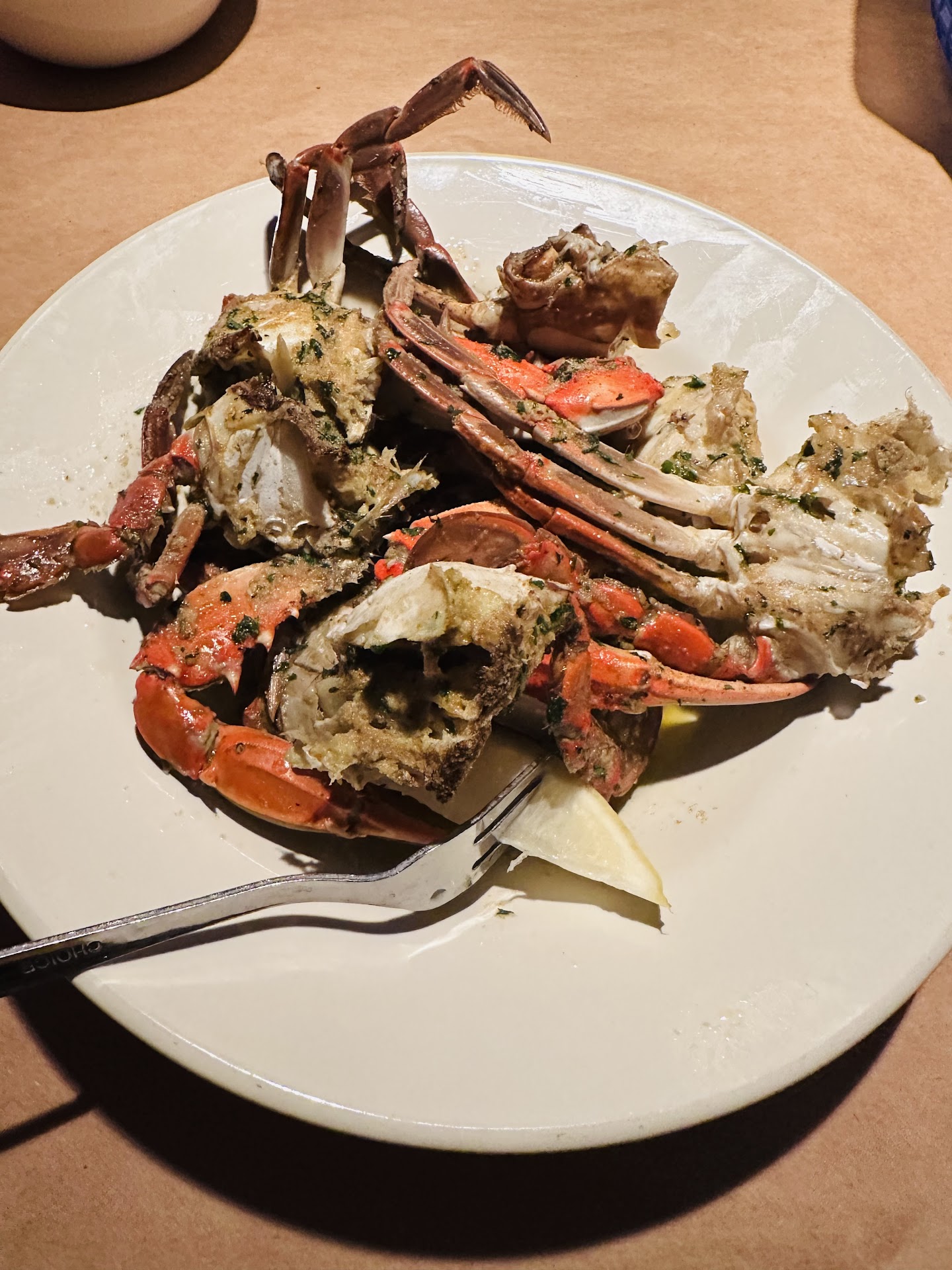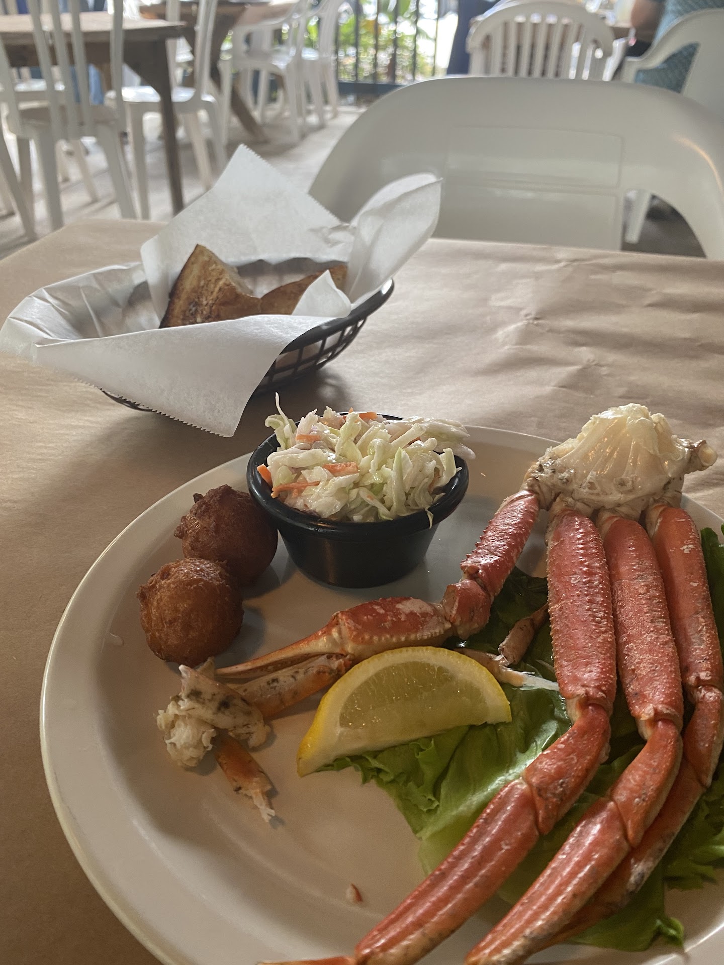 Ā Ā Ā Read moreWent here for Valentine's day dinner. My hubby called ahead and was told by owner it is best MD style around crabcakes. We. Are MD natives and after our meal we realized we were expecting too much of the "Maryland Style" Crabcakes and crabs. We ordered the crabcake platter and they only have a fried crabcake option. I like mine Broiled MD style and when I asked the waitress she had me speak to the chef because she didn't know what I meant by Broiled Crabcakes. Chef told me they can only do fried which was a major disappointment. My husband got the fried option and they were 2 small cakes with crispy outer layer and they put the lump meat on outside of cake but packed inside with claw and backfin in middle and it wasn't well mixed together but layered into each section. Pretty sneaky cheap tactic which creates a poor quality cake. Not MD style. The only difference seemed to be they didn't put peppers in it like typical FL style and tried to pass off as a MD style. We got the crab stuffed mushroom caps which were good but caps were 6 baby mushroom with too much butter sauce but if you order the garlic bread you can dip into sauce. I ordered a skipper's net meal expecting it to be steamed but it was all fried. Again was told they only fry after food came. It includes shrimp, fish fillet, scallops, and oysters. I picked at it and ended up not eating the meal. The breading was thick so you really don't get a big seafood portion after you take off breading. 2/4 pieces of oysters tasted old and rubbery. Shrimp was on small side, and they put on a hige bed of fries so you feel you get a large meal. We got a dozen steamed crabs and it was a mix of sizes and mostly males. The crabs mostly tasted swampy and runny with 4/12 packed and large sized that was steamed just right. The rum bread pudding was very good though. The waitress seeing I was disappointed with dinner offered me a yummy tropical rum drink that she recommended. That and the bread pudding was pretty much my dinner meal at that point. I really wouldn't recommend this as a Maryland style restaurant despite all the MD pictures on walls. I won't come back to this...