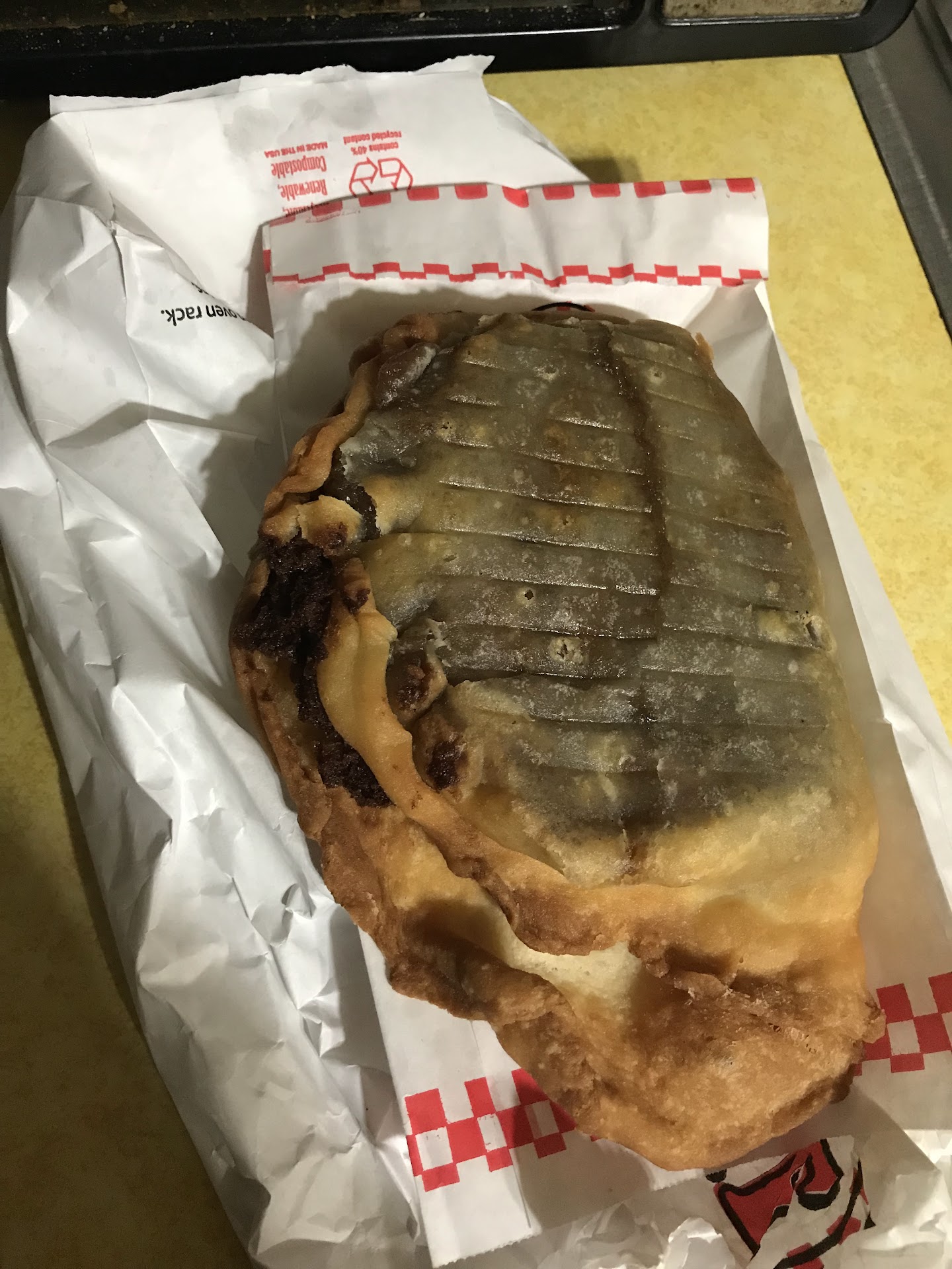 Read moreHamburgers made from brisket which is freshly ground daily? Yes, please! Seriously, what's better than brisket? A piping, hot brisket cheeseburger! The fries were nice & hot, too, & also freshly made from raw potatoes. To top it off, there are the many types of fried fruit pies which are...yep, you guessed it, made fresh daily. My husband got a chocolate cream fried pie which arrived hot & ooey gooey after we were done with our meal. It was a hot but delicious mess. I'm not a fan of straight chocolate, but I had to put my finger into it for a taste, & it was ah-may-zing because it tasted like chocolate fudge which was still cooling, but it was most likely made from chocolate fudge pudding, but, still, it tasted like chocolate fudge! I got the piña colada fried pie which was a combination of pineapple & coconut & also came all nice & hot. Next time, I want to try a peach fried pie. There are also savory fried pies which come in a combo with the sweet fried pies, & I'm definitely going to try that, too. Oh, & any fried pies which aren't sold by the end of the night are frozen, marked for sale, & accompanied by heating directions. Frozen fried pies can't be bought through the drive-thru; you need to come inside in order to purchase. The only downside to the whole experience is the greasy smell when you enter. When I got home, everything that we were wearing was put directly into the washing machine, & my hair needed to be washed, but it was definitely worth it for the yumminess...