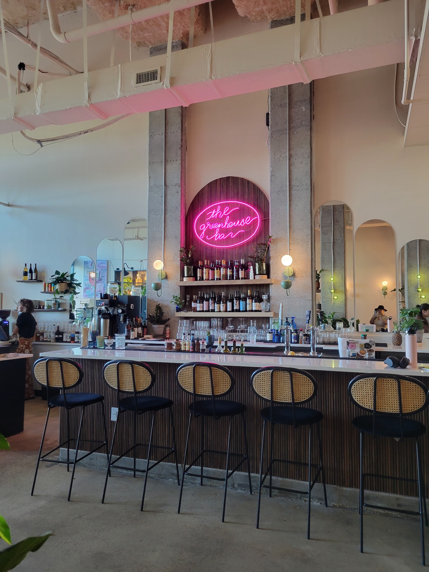 The good: What a vibe. This place is simply stunning. They have a million plants to choose from, and it really does feel like you're having a cheeky bevy in a greenhouse. The drink menu was extensive, and there is something for everyone. I tried the cucumber spritz and the petal blossom. Both were to perfection, and the petal blossom is something I see myself coming back for. Valerie was an amazing bartender and overall cheerful human being. She was giving the experience you'd expect from this place. They're also debuting a food menu soon, and everything looks perfectly curated.