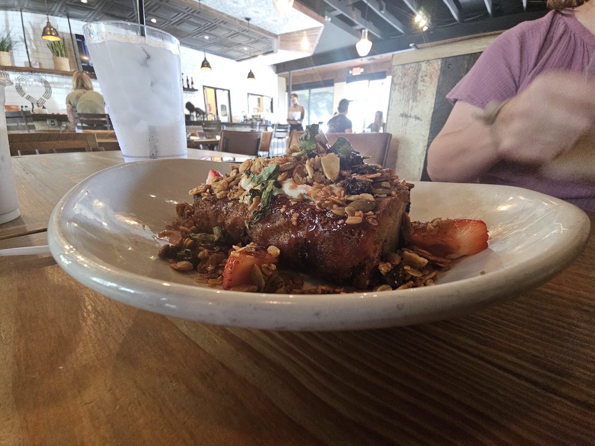 My wife ordered Steak Frites with some delicious roasted sweet potato fries, and I ordered a Quinoa Bowl with salmon. She liked her steak, and I LOVED my bowl. Definitely check it out - it was a great mix of flavors and textures, and everything was really fresh.