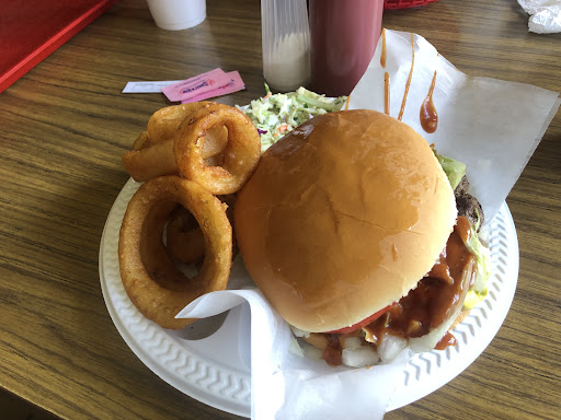 Read moreONE VISIT SO MAYBE JUST BAD.....SOMETHING. I remarked on the lack of smoke from the pit when we walked through the parking lot. No good old Hickory+pig aroma either. THAT should have told me to turn around and seek lunch elsewhere.... I visited at lunch with a friend on a Wednesday and waited 30 minutes for 2 orders of a cheeseburger, fries and slaw. Burger was BIG, fries excellent. Slaw was waaayyyyy too sweet. Sugar should not go in slaw. The burger was huge with an enormous slather of mayo, or 'salad dressing' like miracle whip. Too much. Patty was unseasoned and not hot. I had figured that was what took so long- they were cooking giant burgers to order. Nope. If I had to guess, folks that order for 'here' get pushed to the end of the line to speed up GO orders. Dunno. Plenty of happy diners, plenty of business. Maybe they just don't like unfamiliar faces. The two stars for service are for a half hour wait with no explanation. Staff seemed happy and competent. Atmosphere is either 'Retro' or just tired and dirty. Tasty, timely food would have leaned me to 'Retro', but if we're honest it's clear there hasn't been any money spent on the building or decor in 40 years. Usually I'm not a stickler for appearances but when the food is poor what...