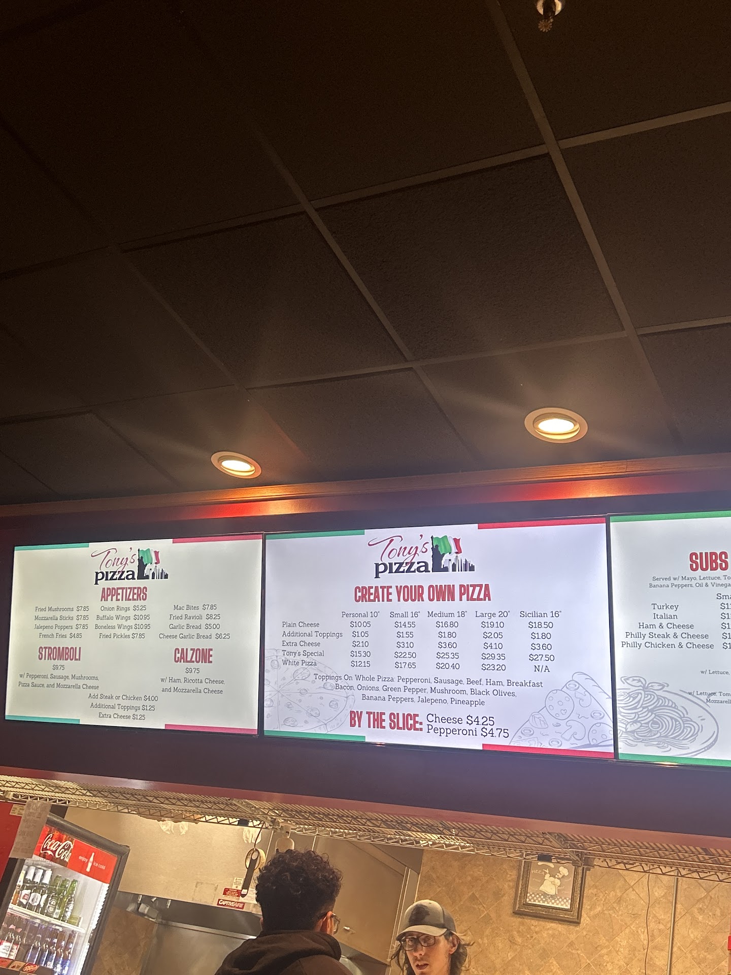 Read moreI have been coming to Tony's Pizza since 1998. The food is great, but today me and family had a bad experience, because of the cashier. We ordered drinks and food, over $80.00. Situation number 1- When we asked her if there were refills, she replied "yes". That was a LIE. After, my kids asked for the refills, she was trying to charge them $0.75 for the refills. $0.75 is not even hard to pay, its how she went about the whole situation. Situation number 2- We also ordered 2 orders of wings and ask for them (crispy) not burnt. They were given to us burnt, I return them to the front deck where the manger on duty was. I told him the situation. He didn't even offer to exchange them. We waited and when we asked for the wings, the cashier got loud and was rude to us. The manger just stood by and let the cashier yell and be rude. Manger did return my money, but lost a customer. Tony's Pizza staff has changed. Use to be nice. Not all the staff is like her. Feel bad and won't go back. I recommend to be up front on prices with the customers. Mangers need to be able to step in asap...