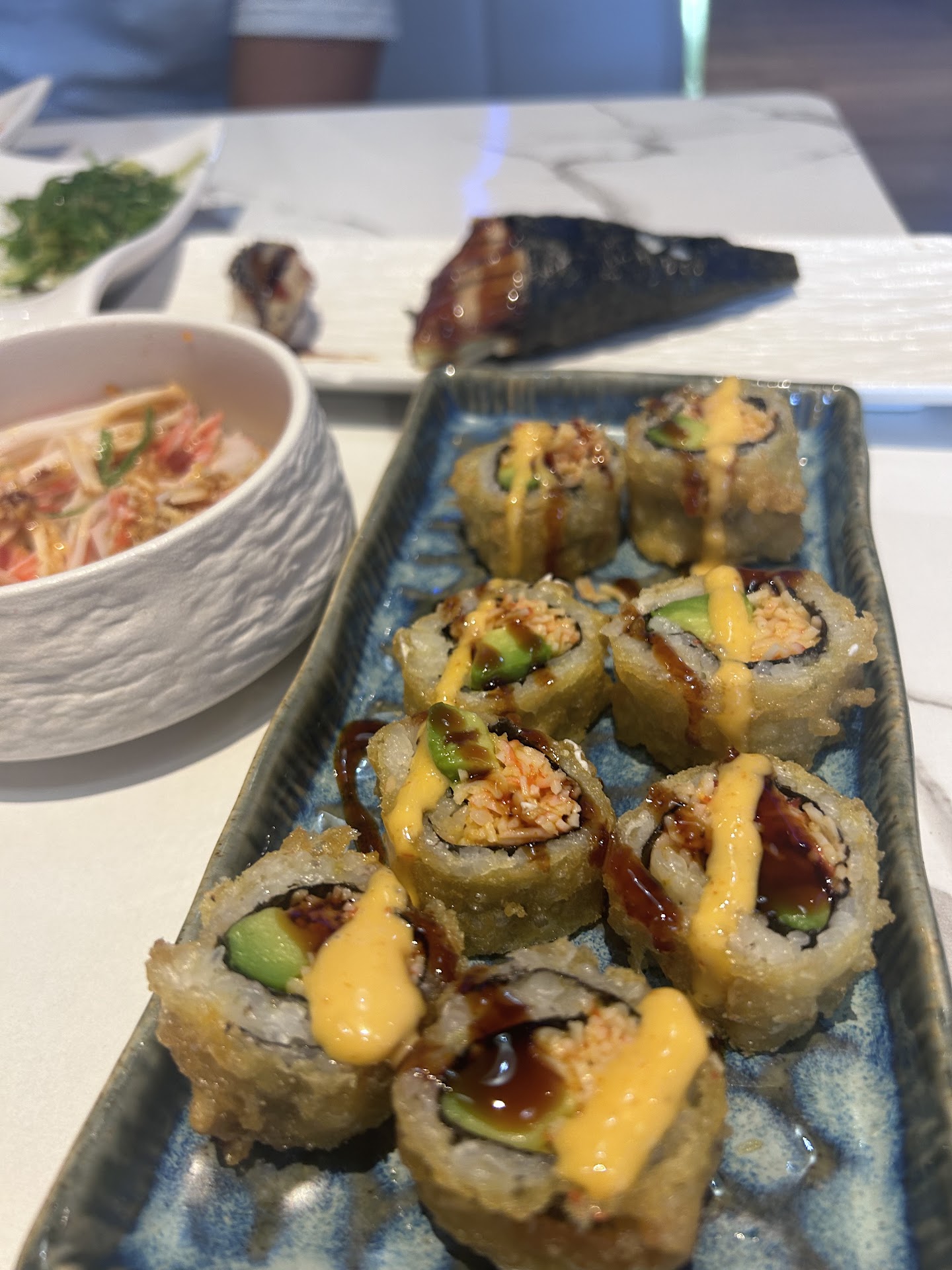 Ā Ā Ā Read moreWent here for lunch yesterday with friends and the service was terrible. One of us was here during his lunch break so he only had an hour to eat. He ended up leaving without eating much because of how slow they were. The restaurant wasnāt full when we got here. About 60%. We saw some people were standing around at the counter. We flagged them down, but it still took them 30 minutes to get our drink orders. The girl who got our drink orders was in a bad mood and acted as if we were annoyances the whole time. She was short and impatient. We asked for a kidās water to be in a togo cup to avoid spillage and she responded āI knowā. She didnāt give us any plates or utensils until we asked a different person. We were given dinner menus to order from and were switched to lunch menus when we asked for it. Just a heads up, no soups, sashimi, or hibachi in the lunch menu. Wish I had taken some photos to show. The first plate came out when we were already there for 50 minutes. We spent 2 hours in total. The wait for food was not too bad when they got our orders, but donāt expect the food comes out fast. We didnāt want to leave any tips due to the bad services; however, the second girl who got our food orders was nicer and we would hate to not give her anything. Wish there were a way to only give it to her knowing the tips would be split at the end of the day. Overall the food was better than other ayce places, but the services really had us think twice...