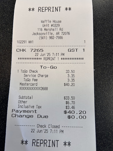 I typically order the same thing at any Waffle House, but on this occasion, I was told there were no substitutes. Eventually, they did provide the substitution. It was an unexpected surprise, as I’ve never had an issue like this before. In this case I think maybe the server didn't know this was a possibility. My eggs were not cooked correctly. I chose to not have them corrected as so many other issues were already going on.