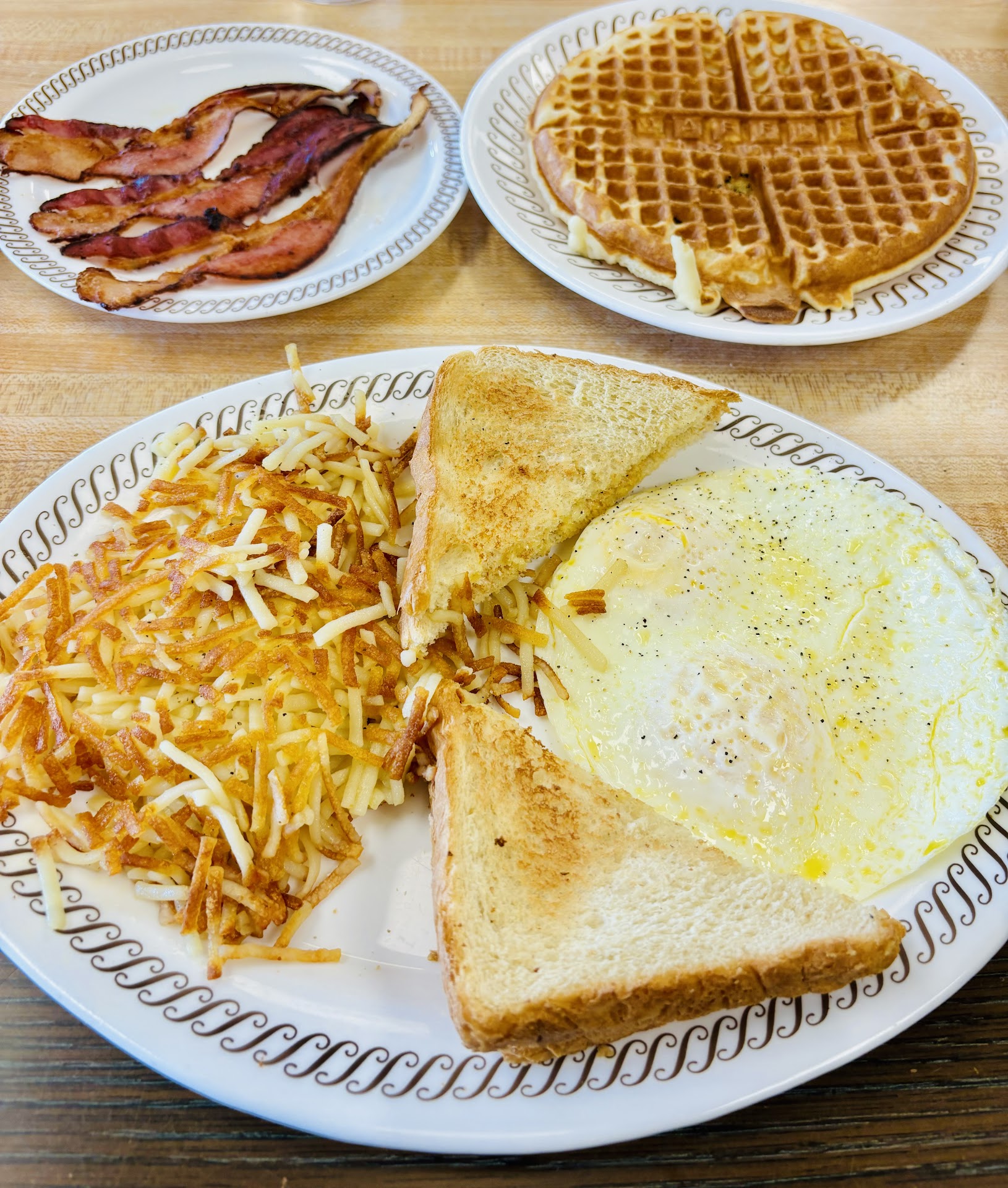 Food, Waffle house has some good food in my opinion, just about everything I've tried over the years and nothing I've really disliked, I'd say the food is quite good and nice to have a conversation over with a friend or family member, there's a selection of drinks to accompany the food too.