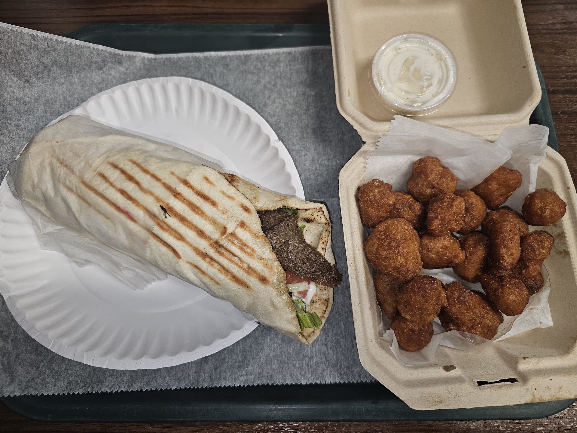 The Atmosphere Wally's Gyros & Subs offers a casual and welcoming environment, perfect for a quick bite or a relaxed meal with friends. The décor is simple but clean, with a few nods to Greek culture, creating a cozy ambiance that feels authentic yet unpretentious. The seating is ample, though the place can get a bit crowded during peak hours, which only adds to the lively atmosphere. The Food The star of the show at Wally's is, of course, the gyros. The portions are generous, with well-seasoned, tender meat wrapped in warm, fluffy pita bread. The tzatziki sauce is fresh and tangy, complementing the meat perfectly. If you're a fan of subs, their offerings are also commendable, with a variety of fillings that are packed with flavor. Vegetarian options, like the falafel, are available and equally satisfying. The fries are crispy and well-seasoned, making for a perfect side dish. Wally's also offers some delicious Greek desserts that are worth saving room for. Service The service at Wally's is friendly and efficient. Even during busy times, the staff remains attentive and quick to address any needs. The food is prepared fresh to order, so there might be a slight wait, but it's always worth it. Value Wally's Gyros & Subs provides great value for money. The portion sizes are hearty, and the prices are reasonable, making it an excellent choice for anyone looking for a fulfilling meal without breaking the bank.Overall Wally’s Gyros & Subs is a solid choice for those craving Greek-inspired comfort food. Whether you're a fan of gyros, subs, or just looking to try something new, Wally’s won’t disappoint. The combination of delicious food, friendly service, and a welcoming atmosphere makes it a local favorite. Highly recommended for a...