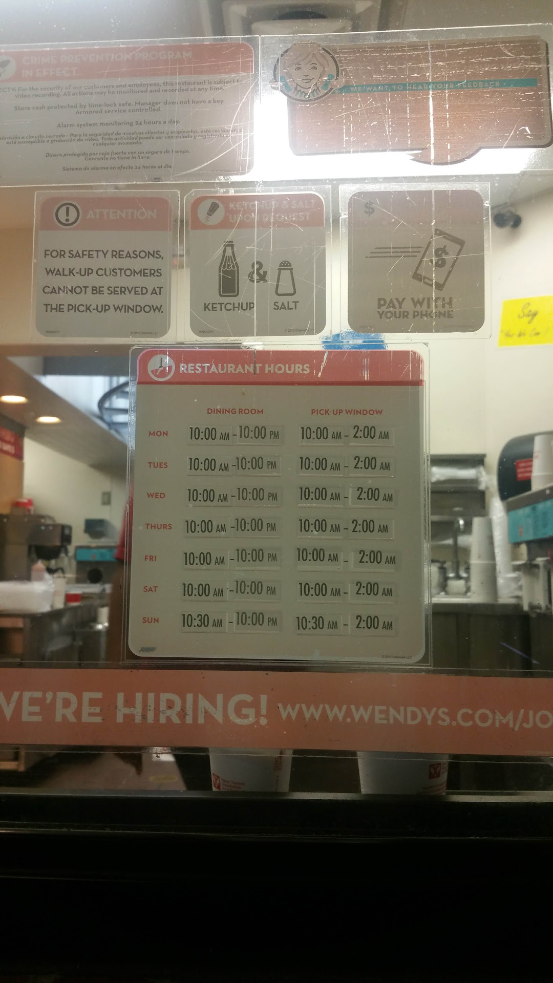 #3 By far the worst experience. 14 May 2019 around 8:30 PM, I went through the drive thru with 2 separate orders. I ordered a #13 spicy medium. My friend ordered 2 biggie bags, a #9 and an extra 6 piece nugget. They gave me a small drink when I ordered a medium. Never received a receipt. And received the wrong order for BOTH orders. They handed us four 4 for 4's. We went inside, the manager took the food from us and gave it to the car that was behind us in the drive thru. I worked fast food before and I know that isn't allowed. Another manager, Female, didn't allow the cashier to help us. She told the cashier "They're drive thru, don't worry about them". We stood there for 15-20 minutes waiting for someone to acknowledge us. It took the cook to walk away from the grill to help fulfill our orders. And he did it with a smile on his face and kindness in his voice. The managers were no help at all and the cashier onthe drive thru needs better customer service skills. We did not receive any kind of apology either. This Wendy's never gave me a problem until now