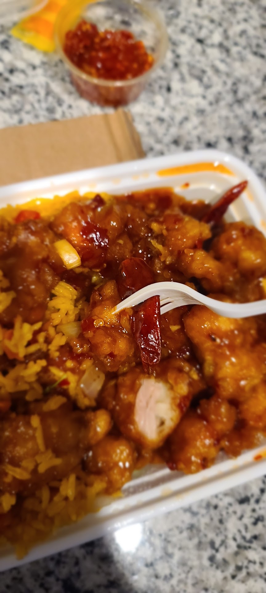 Read moreIt was pretty gross. It was hot and ready, but everything was flavorless. Even the fortune cookies were gross. The wontons in the wonton soup were cooked through, the chicken sticks were bland and slimy, the chicken fried rice was flavorless and not cooked all the way, beef lo mein was bland and the veggies were slimy, the pork egg rolls were ok. The sauce was the only thing that helped with flavor. I saw it had decent reviews, so I thought I’d try it out, but it was pretty bad. Wasted about 30$. Ended up making something at home. Don’t mean to sound rude or anything. Just...