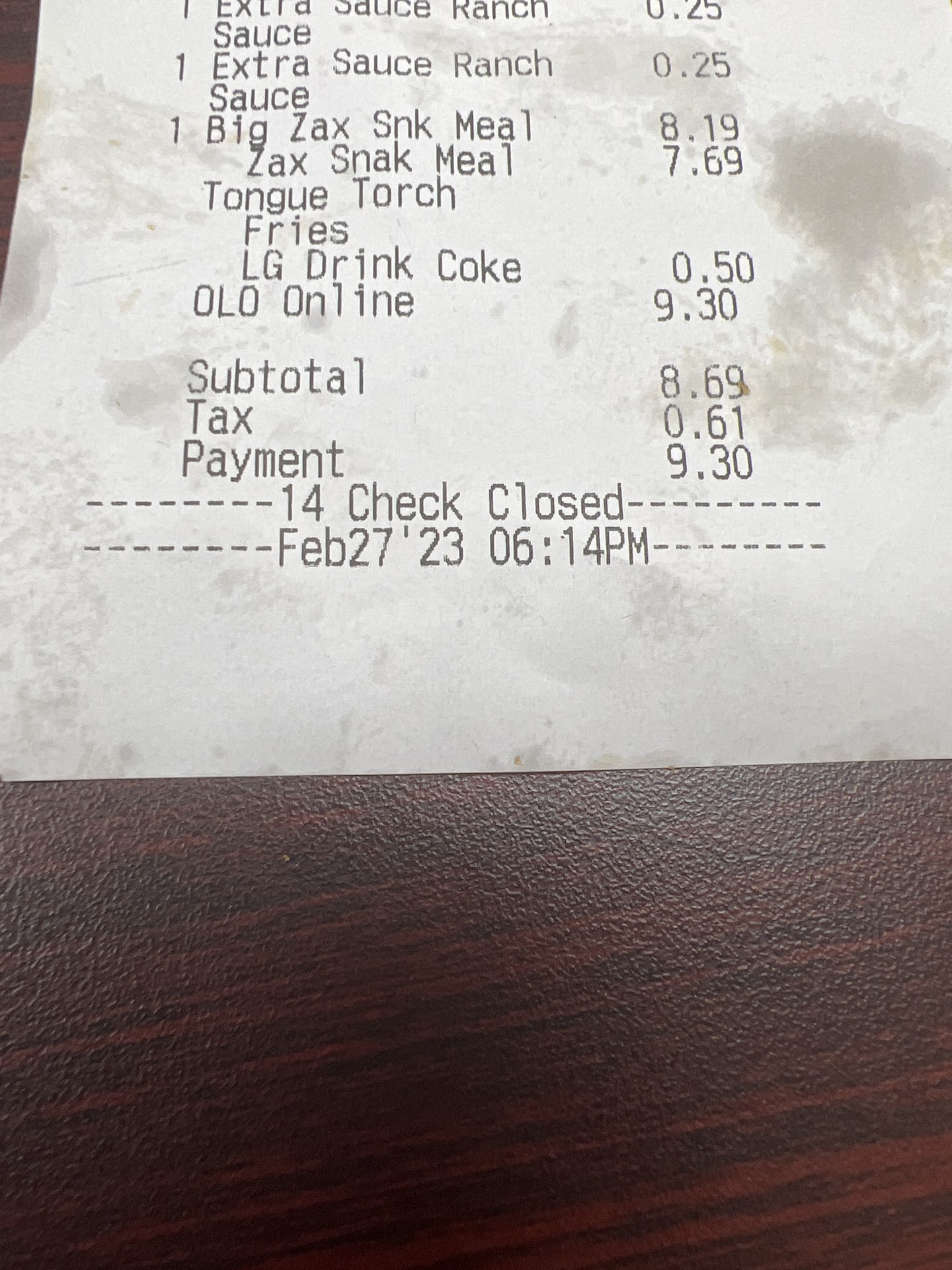 Read moreI didn't have the best experience at this Zaxby's, I normally eat at the one in Orange Park. The food was good but the service sucked, not the register staff but the chef. I ordered 10 piece wings but accidentally told the girl who was taking my order bar-b-q and wanted to get teriyaki. When I realized what I did I ran to register to ask the girl who took my order to see if she could catch the chef before the wrong sauce got put on. She was unable to catch him in time cause there was a rush going on and I heard him say that they were already done. Since I heard him I told her don't waste the food and didn't want to back the kitchen up anymore than it was. So I asked if they could help me out and just wipe the sauce off and put the teriyaki sauce on since the food was still in the kitchen behind the window that they pass it through. I didn't hear exactly what the chef was complaining about but it wasn't like I was making a scene I just was like waiting for them to come out I tried to catch it in time and he was complaining to the girl but wouldn't say what he had to say loud enough for me to hear but he made sure that I heard him say that they were already done so he wouldn't have to fix the problem. So I asked the girl to just get me the sauce and something to shake them up in. She was able to do that but I got stuck wiping the wings off and tossing them around in a to go box. NOW IF THE CHEF DIDN'T WANT TO HELP ME OUT MAYBE HE SHOULDN'T BE IN THE SERVICE INDUSTRY. COMPLETELY...