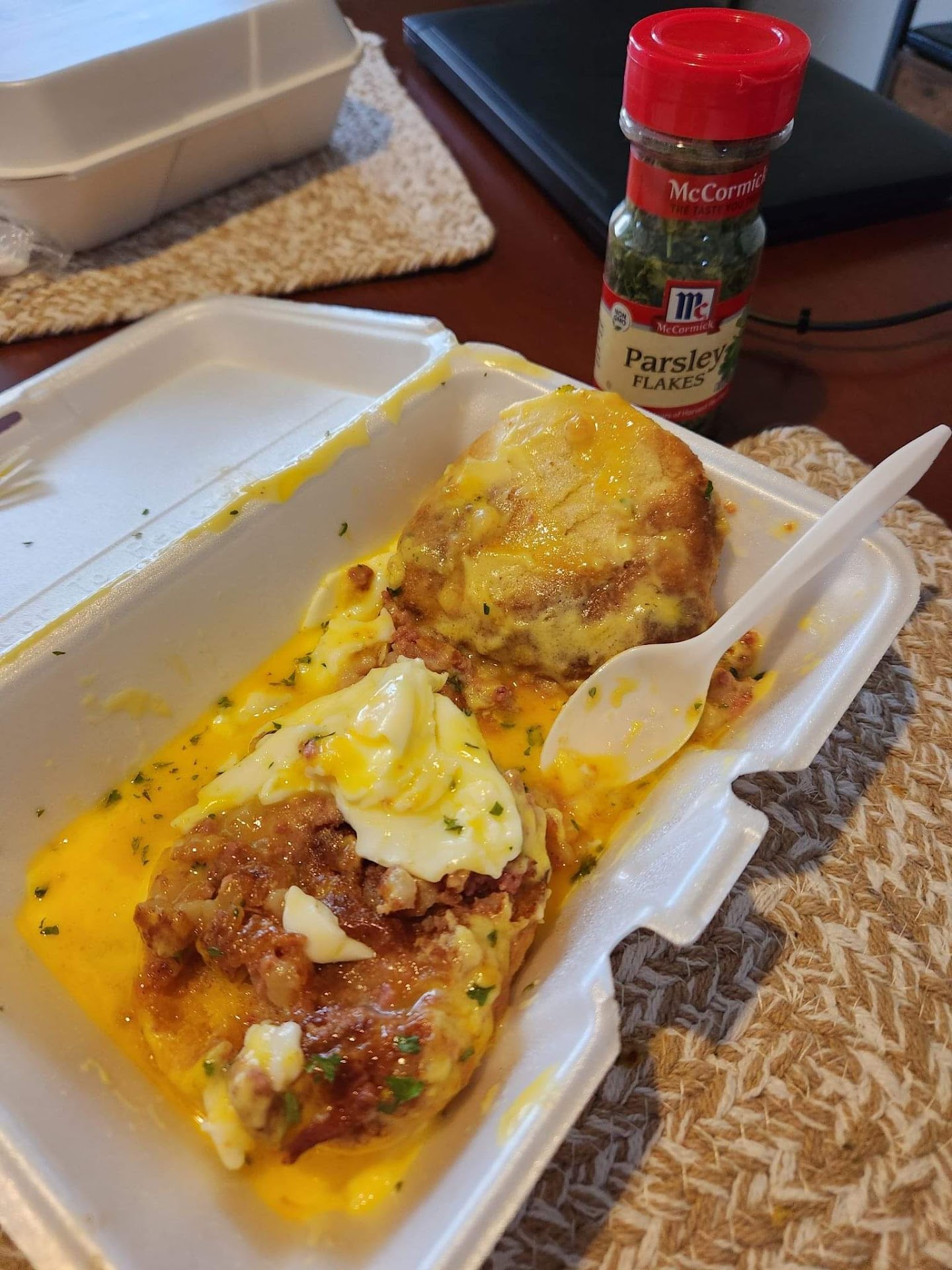 When I got home, the Eggs Irish was leaking and looked like soup with undercooked egg. I called back and was told they could make a new one. So I went back to pick it up.