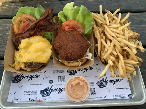 Read moreCame across this gem driving through Southern Vermont. Something about this place drew me in. The crowd, the fact that it was clearly an old gas station, still with its large pump canopy or it’s cool vibe with a colorful art mural on the side of the building, it was all of that. It’s the food that keeps me coming back. Not a fine restaurant and not quite fast food, but something in between. I’d say Vermonts country version of Shake Shake. You place your order at the window, they bring it out and call your name. I really enjoyed the OG Burger which comes with two thin patties, cheese, lettuce, tomato, pickled onions and a spicy special sauce. I added fresh cooked bacon for $1. All this together really works. The Fried Chicken Sandwich served with lettuce, tomato, pickled onion on a bed of cabbage topped with their green goddess sauce was really good. They use local farm raised chicken, but it’s not a cutlet, it’s ground into a patty with a crispy breaded outside. I chose to add their spicy special sauce to it as well. Buns were very good too. Their Fries are shoestring type and are cooked crispy to perfection, however a bit too salty. They also offer soft serve and a full menu of Shakes made from their own custard recipe that are thick and delicious, although on my visit for this rating, they had no ice cream to make any. Disappointing for sure. As the name would imply, they offer homemade Honeypie, haven’t tried it yet, but I hear it’s sweet and delicious. They offer many other items including a line of handmade sausage with ingredients sourced locally and interesting salads too. Beer, wine, coolers, homemade lemonades, (the maple lemonade was surprisingly good) as well as a full line of bottled sodas are available too. Currently take out and outside table dining only. Overall a great spot with a large following, serving comfort food with awesome fresh ingredients, all made...