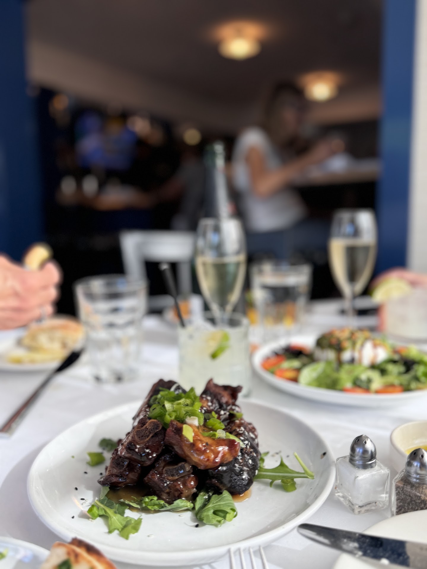 Our server, Hailey, was exceptional, remaining patient and courteous despite the specific requests from our party. We were celebrating one of the members return to Newport and decided to start with a bottle of Taittinger champagne. For appetizers, we enjoyed calamari, a hummus plate, Burrata salad, and sticky ribs for the rest of our group.