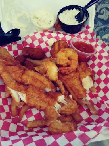 Read moreThe food here was pretty good overall. Everything we ordered came out nice and hot. The sea scallops were a little smaller than some other places but they were seasoned well. My jumbo shrimp were kind of fishy which I'm not used to at all. Some tarter sauce cut through it but I usually don't use condiments. My husband enjoyed everything he received and has gotten their food delivered to the house sometimes when I was working. He says that they have always been very fast. When reading reviews before visiting today there was a bit of disagreement about their fries in particular. I thought they were awesome and finished all of mine. In the past month or so, we've visited 3 family seafood restaurants and my husband and I agreed that this ranks as number 2. I thought the prices were fair and the service was good. I don't know if we'll dine in again but we'll definitely get it delivered when we feel...