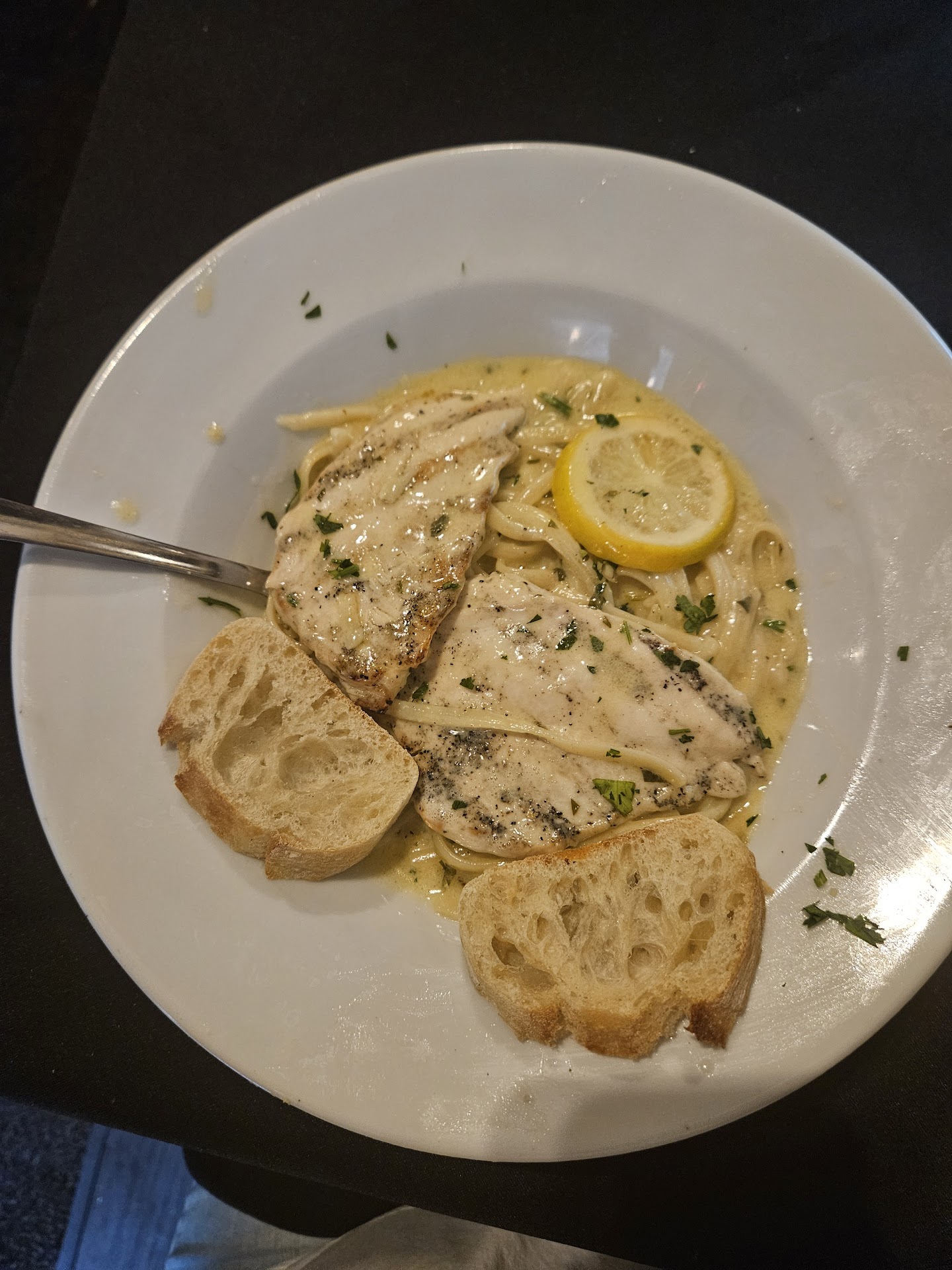 Backlit menus! What a great idea to have in a sometimes dimly lit restaurant (especially when you have older eyeballs). Had reservations, bread was there when we arrived and was delicious. Dipped it in the olive oil. Ordered drinks and had them almost immediately. Had Kona in the bottle. Rare. Then ordered appetizers (try the fried provolone if they have it), and dinners. I had the chicken florentine (which was a special), and I ate every bite. I normally save some for leftovers the next day but not this time. Chicken alfredo's sauce was super dense but tasty. ONLY complaint was that it got very busy and noisy (which isn't a bad thing at all for a small town restaurant). However, that left our very nice waitress super busy and it took awhile to get our checks. Otherwise I highly recommend. Three drinks, appetizer, two meals and under $100 is hard to find these days, especially when the food is so good. We'll be...