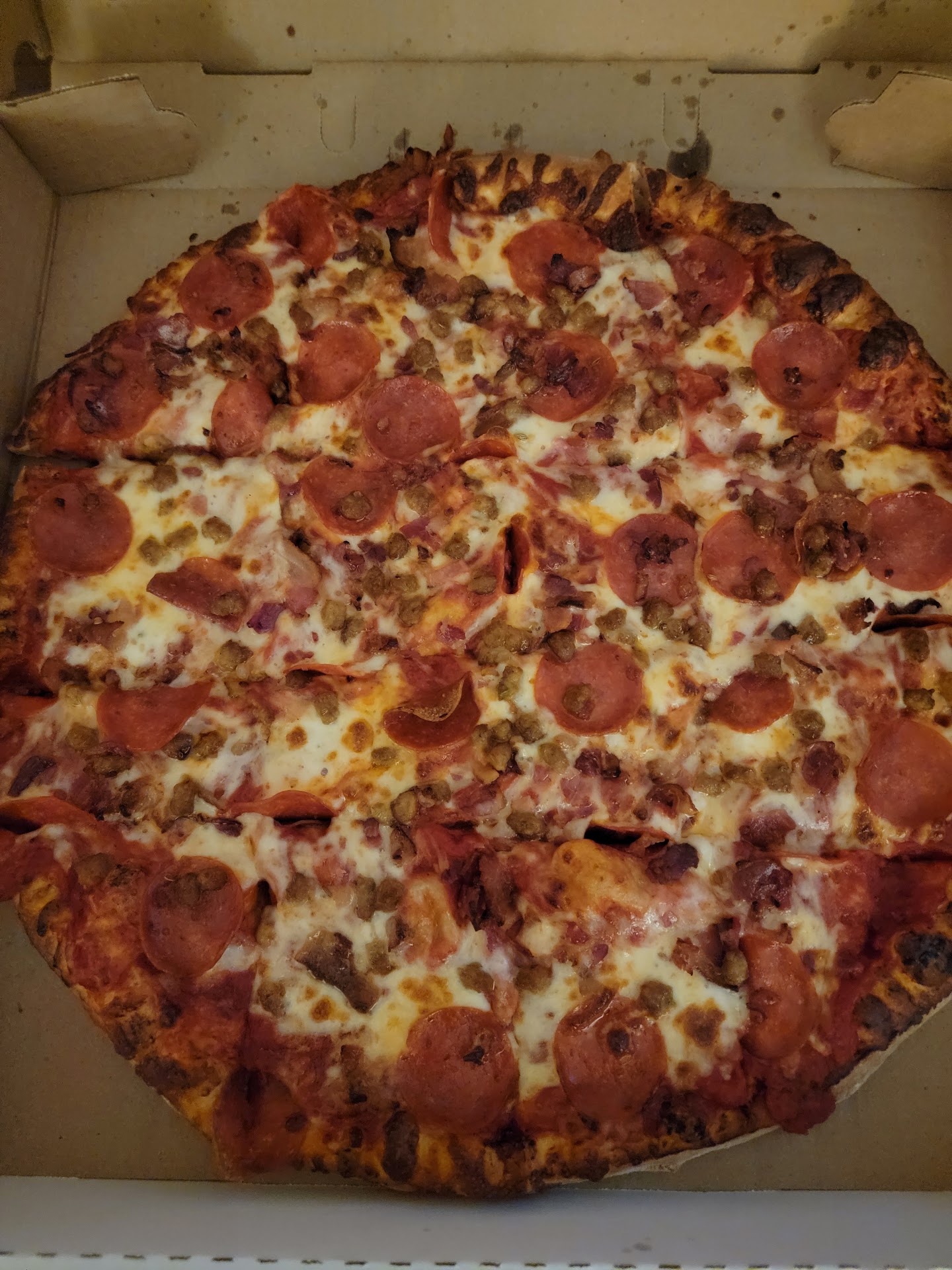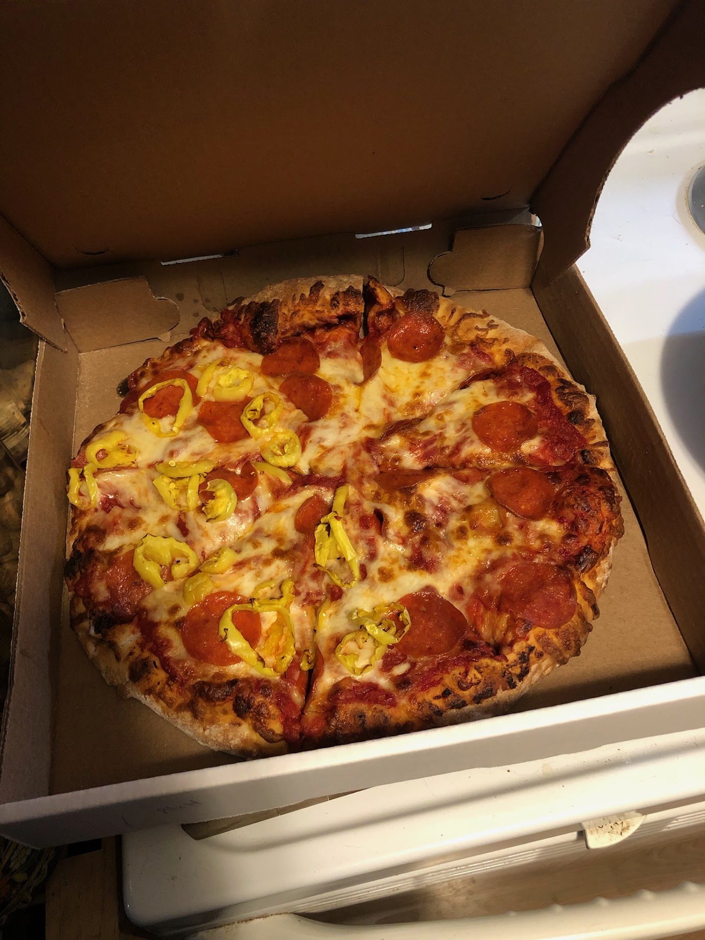 Read morePizza is good, thick and cheesy, wings are always great. But, my order wasn't ready on a recent visit so I sat in a booth to wait, the owner kept giving me an odd look, when he gave me my order, he didn't put the blue cheese cup in the wing box this time. My next visit I told the older woman taking my order about the missing cup, she gave me a look like I was lying and put an extra cup in the box without a word, food was great as usual. Then, my next visit (good customers) order not ready, I stood this time by the soda case waiting, I noticed the owner guy kept bending a pizza box, he appeared to be weakening it, after cutting the pizza and closing the lid, with both hands he placed a loaded wing container on top of the bent pizza box and pushed it down pretty hard, looked like he squished the pizza, he called a name, and the customer was sitting in a BOOTH! When he picked up the pizza I could see the box buckle. So because of his behavior we decided not go there anymore, it is clear he is willing to mess with your food if he gets urked at you. If your order isn't ready, DON'T SIT DOWN! ...
