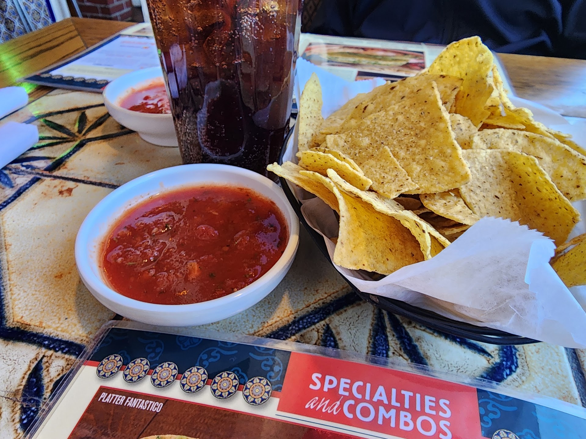 We sat on the bar side where our table was leveled out with a stack of napkins. Our server took 20 minutes to bring us menus and another 20 to come take our order. He never came and asked for refills, we had to track him down to order more, he didn’t clear the table of finished plates or cups.