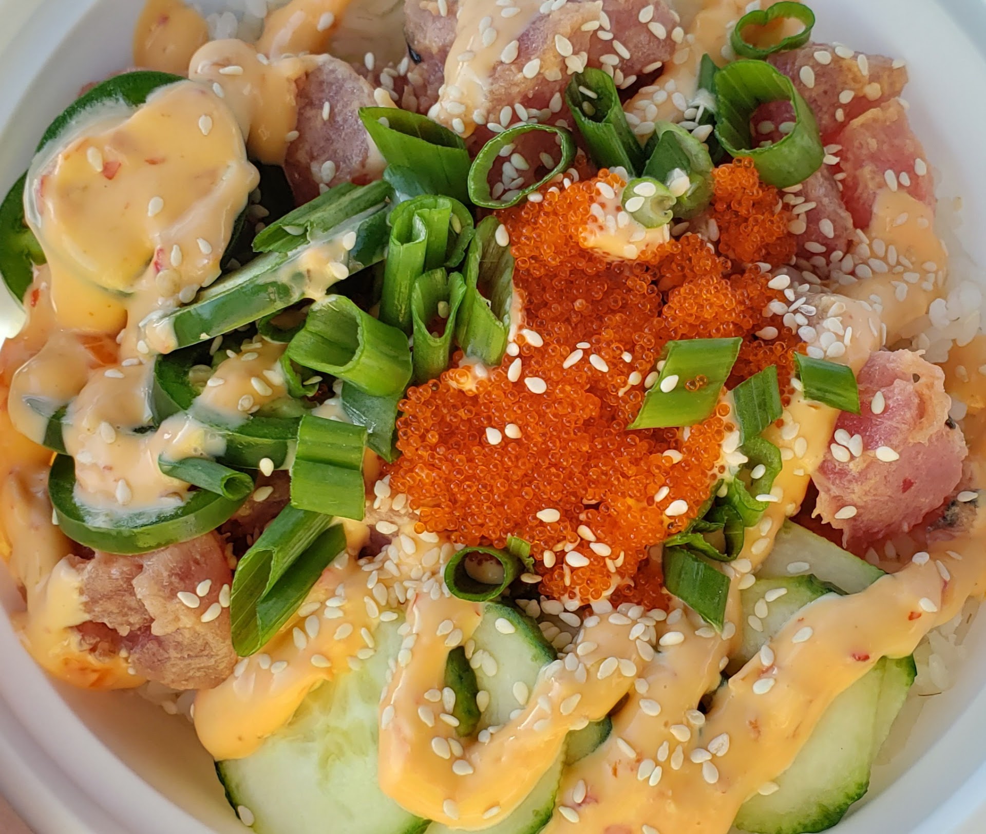 My favorite item is the volcano bowl, though the large chunks of yellow/white onion I've gotten in my bowl the last couple of times I ordered it can overpower the fish (and have other humans and some housepets avoiding you for the rest of the day from the breath 🥲) so I recommend going light on the onion or requesting a little green onion instead.